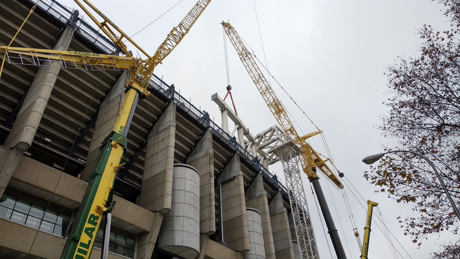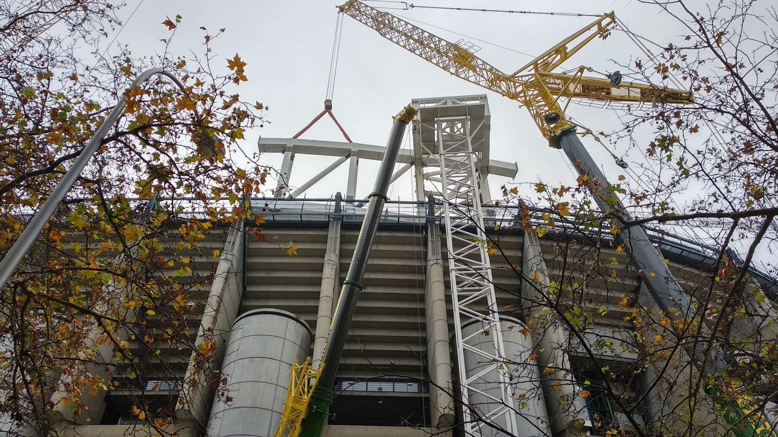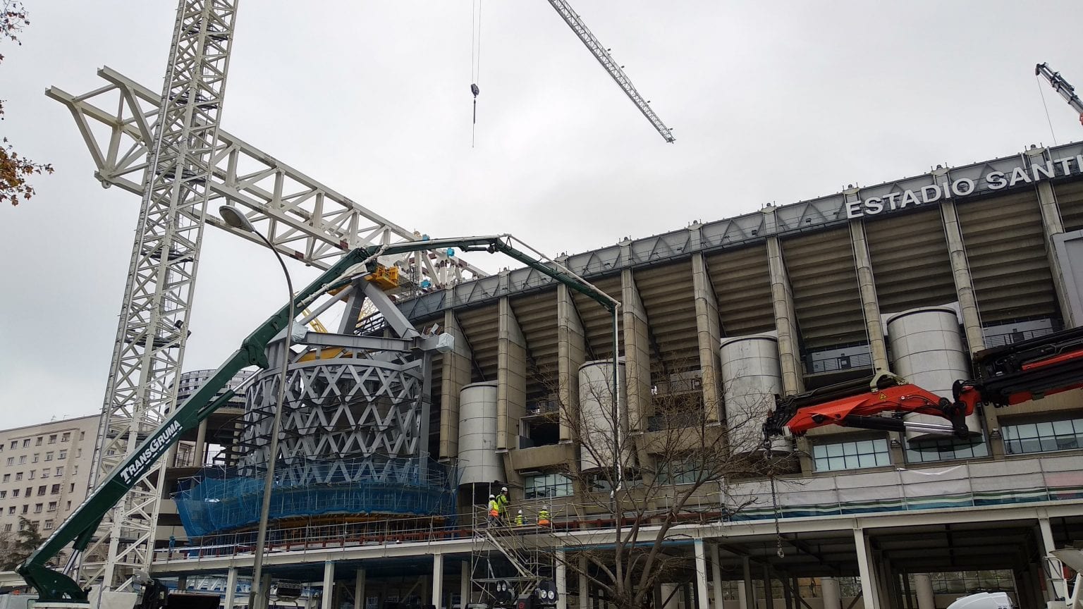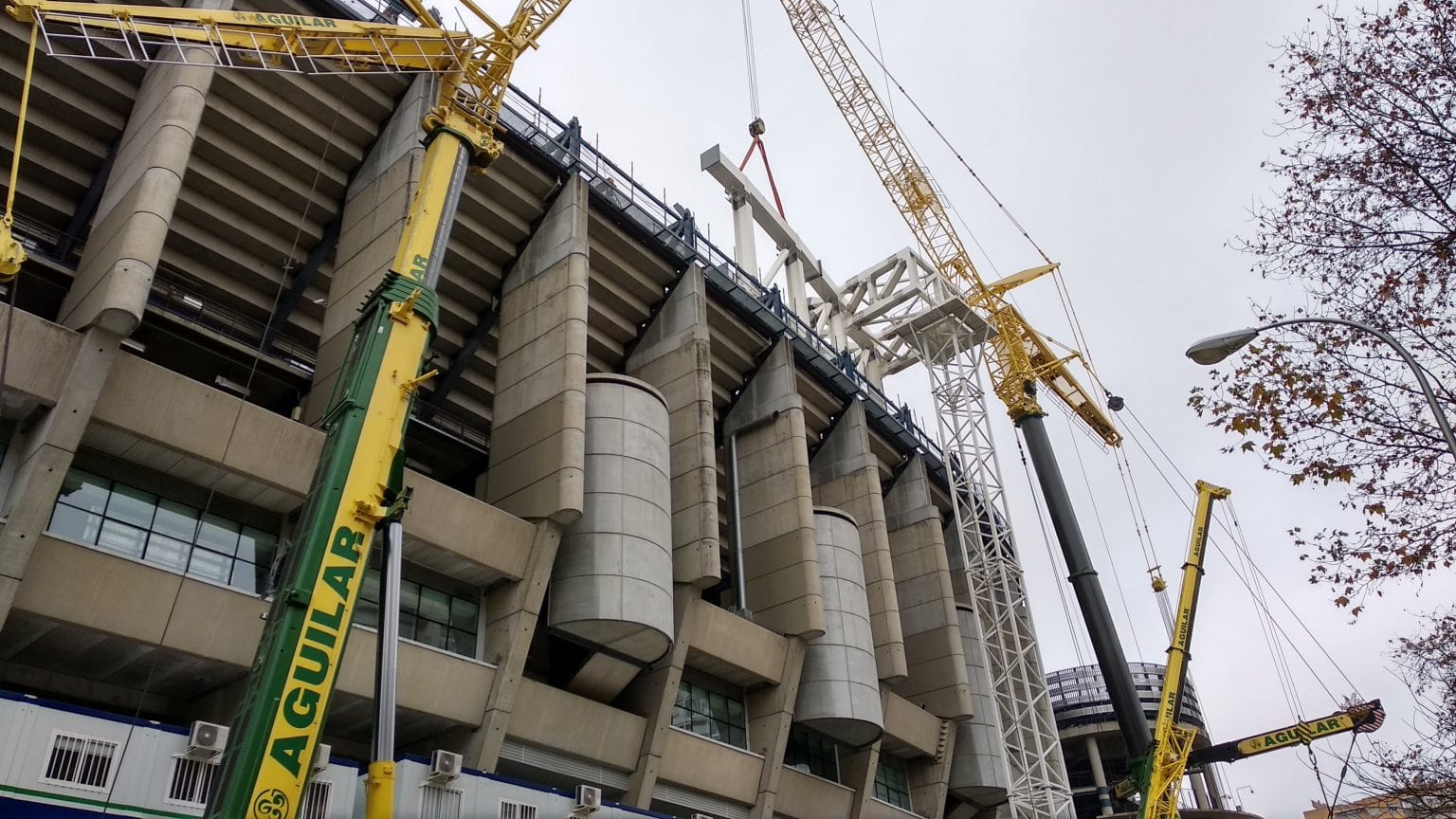 Mañana desaparecerán de obra las 2 LR1600 de las torres A y D que los últimos meses han ocupado los cuadrantes sureste y noreste y que tan fundamentales han resultado para el montaje de las cerchas principales del estadio. Volverán al menos una de ellas, pero dentro de unos meses.