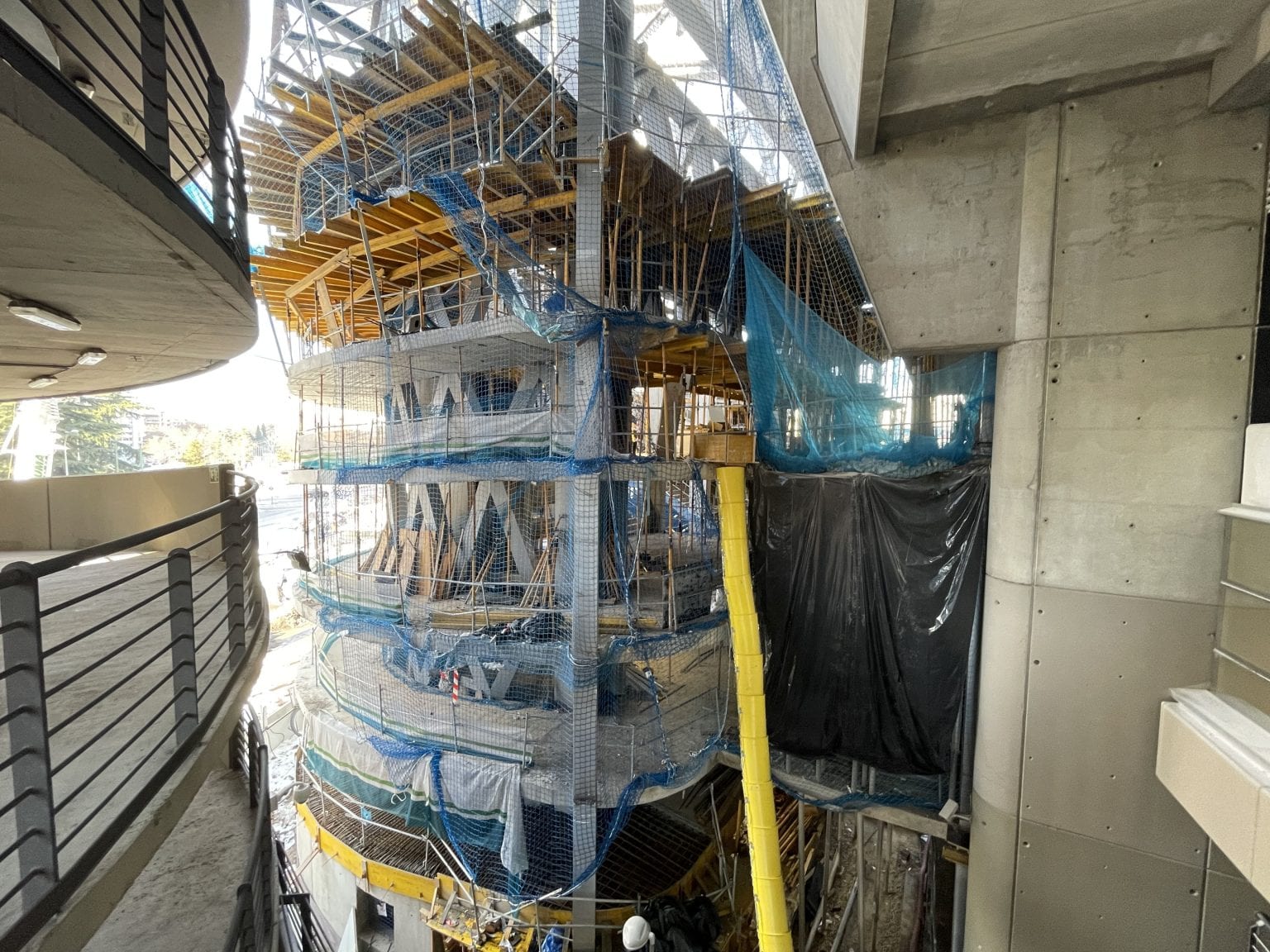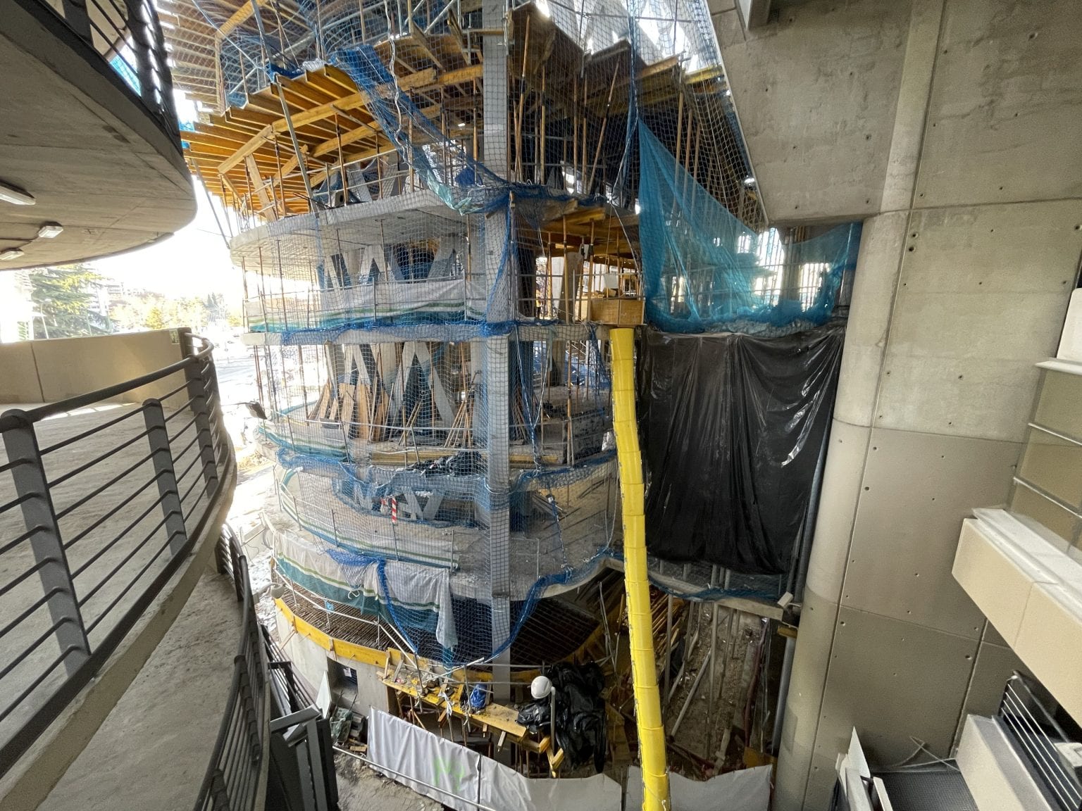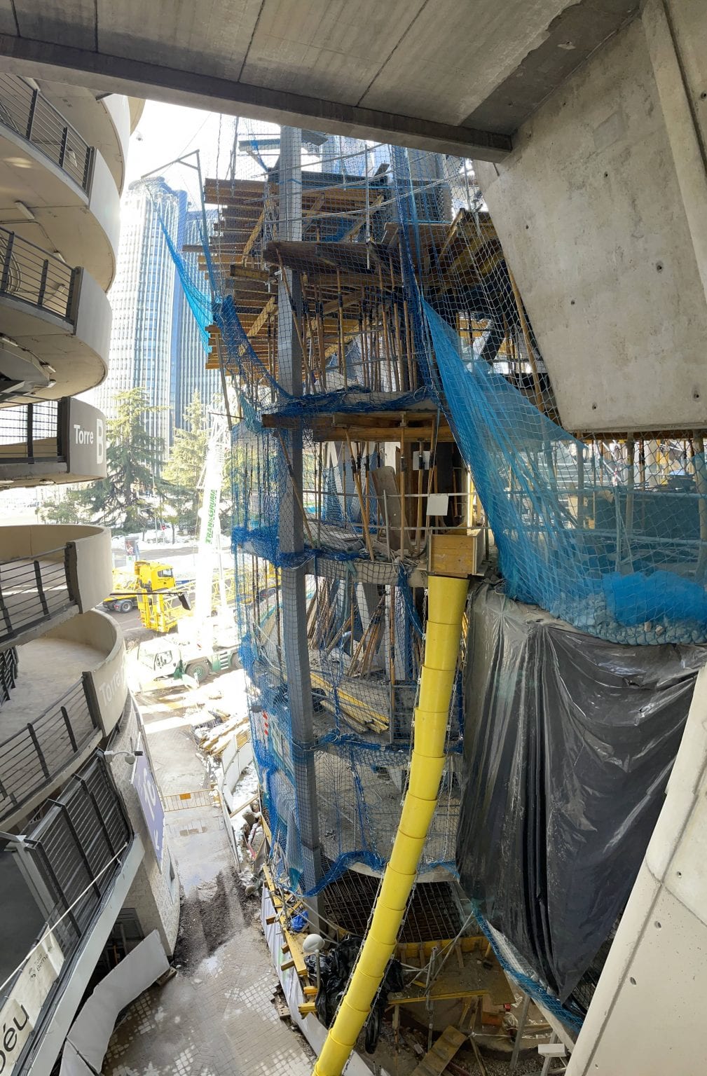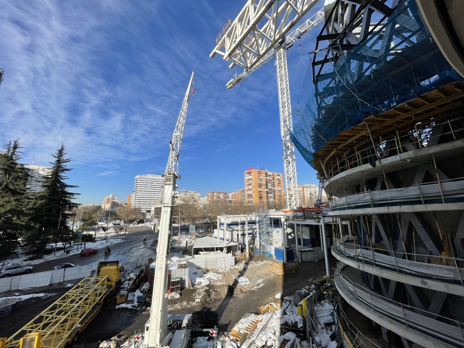 En cuanto al desarrollo en sí, las nuevas torres B y C siguen creciendo, especialmente la torre C que ha conseguido afianzar el nivel 6 a nivel rampas, estructuras y desmontajes y demoliciones de encofrados.