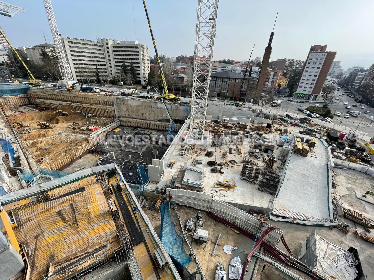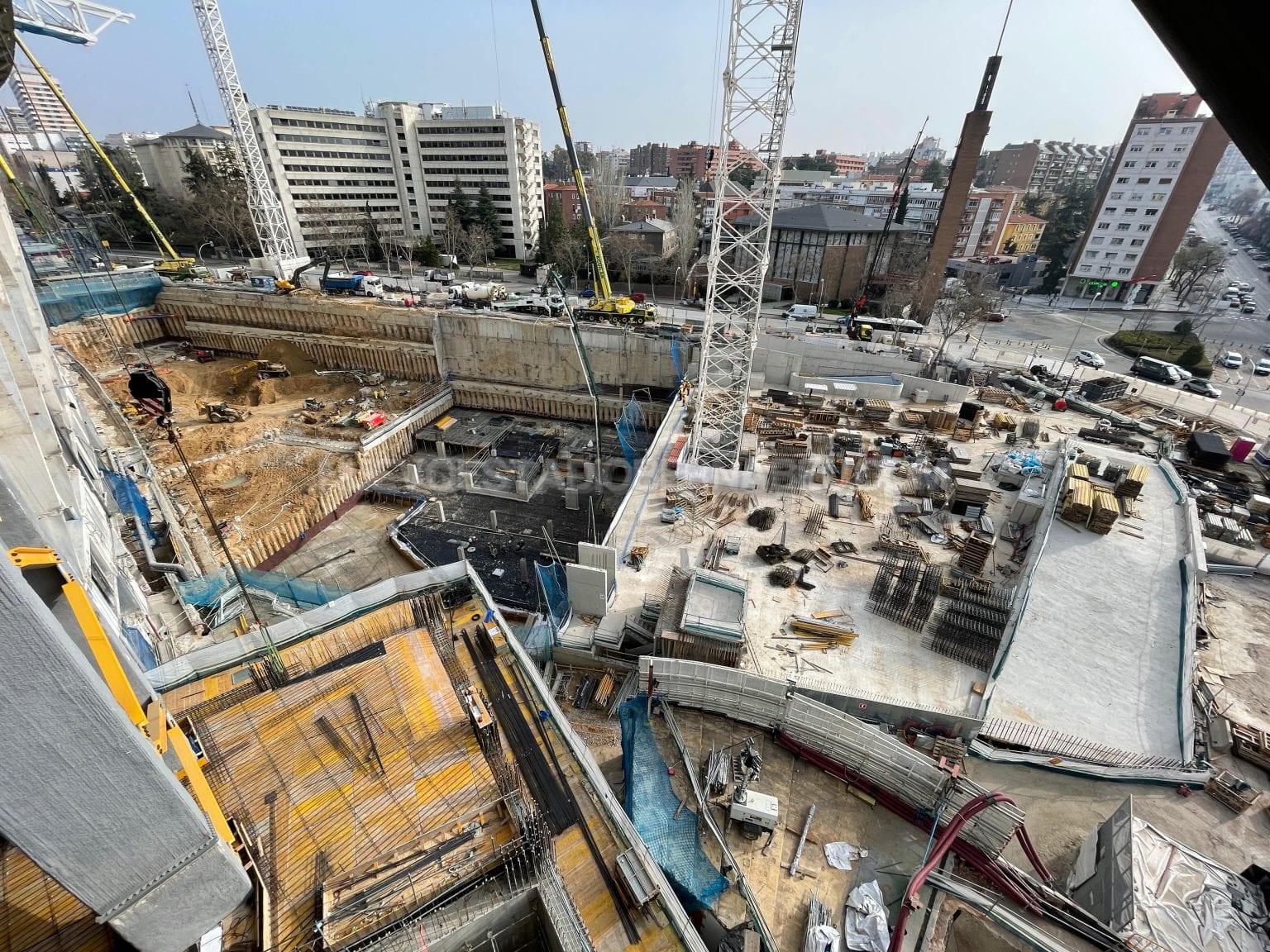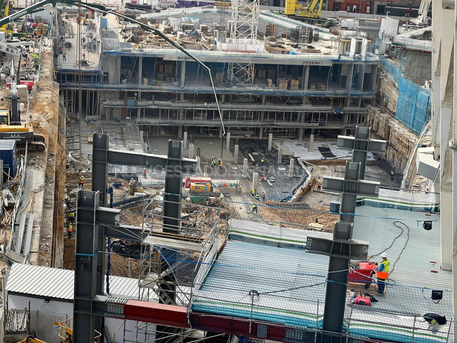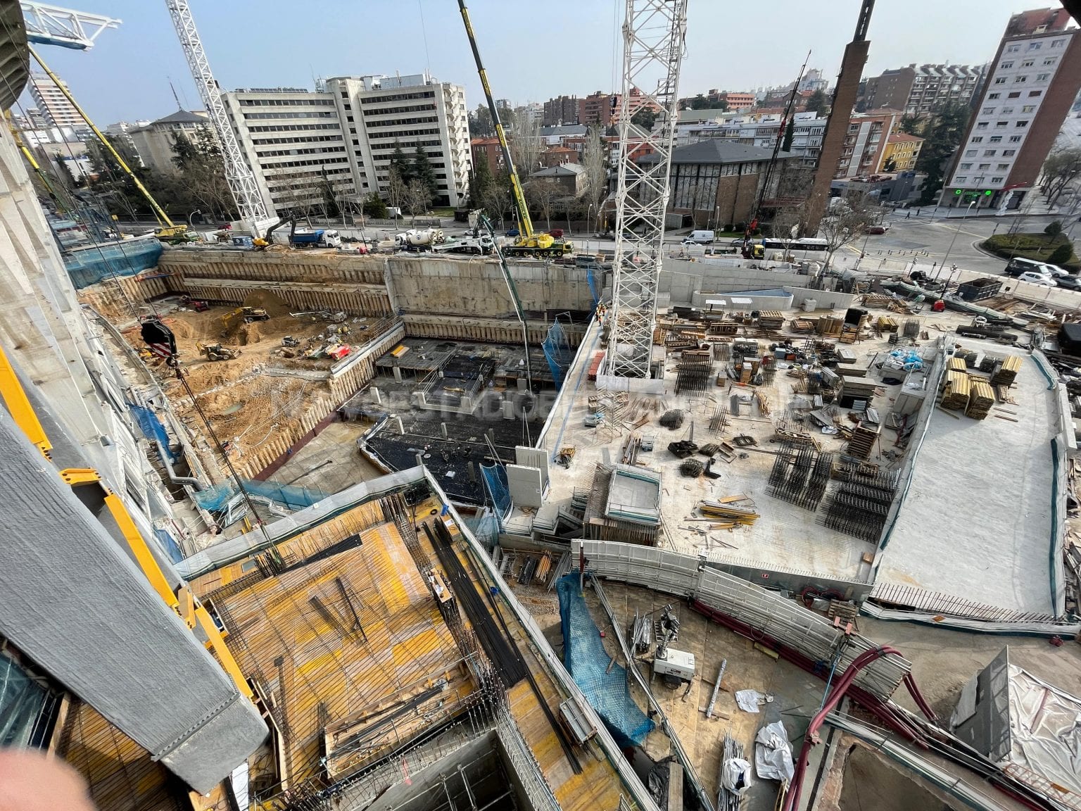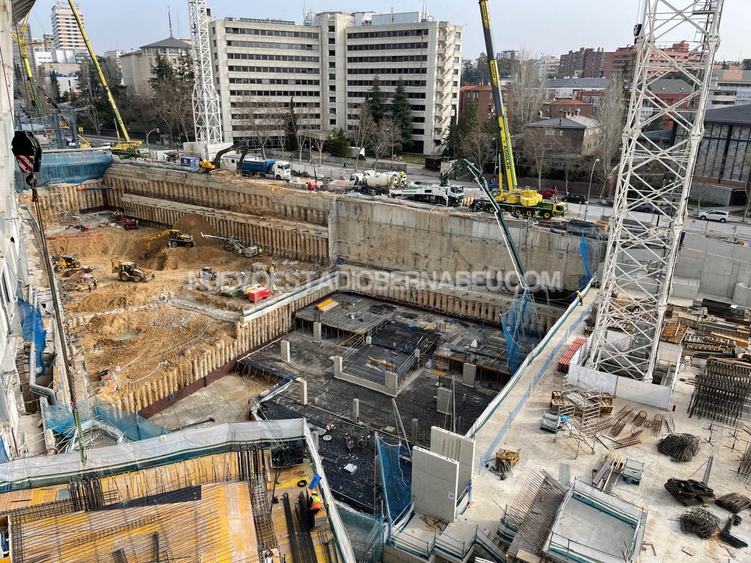 El nuevo parking continúa en un avance largo, complejo y tedioso. La fase I está en un nivel óptimo de terminación pero la fase II y III tienen aún muchas horas de trabajo hasta que veamos cumplido el bloque completo de más de 90 metros de altura desde arranque bajo rasante que formará el conjunto de sótanos más el nuevo edificio este. No es poca cosa, y esta es otra de las actuaciones vitales para el nuevo Bernabéu aunque llegados a este punto de obra todo es vital, todo hace de cuello de botella para la actuación siguiente y así pasan las semanas con una coordinación absoluta en la ejecución de trabajos.