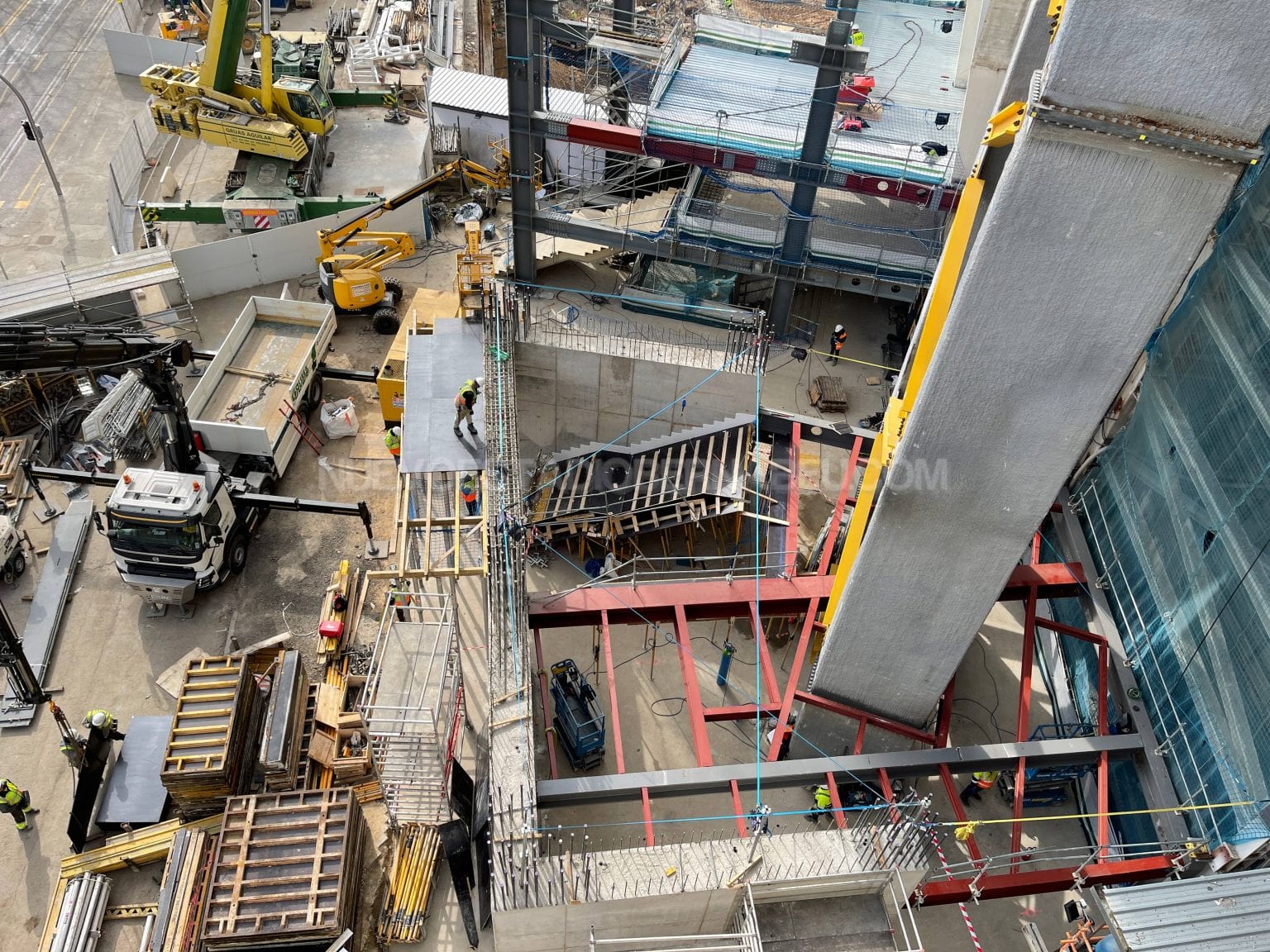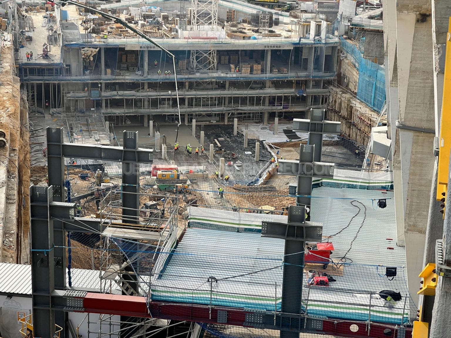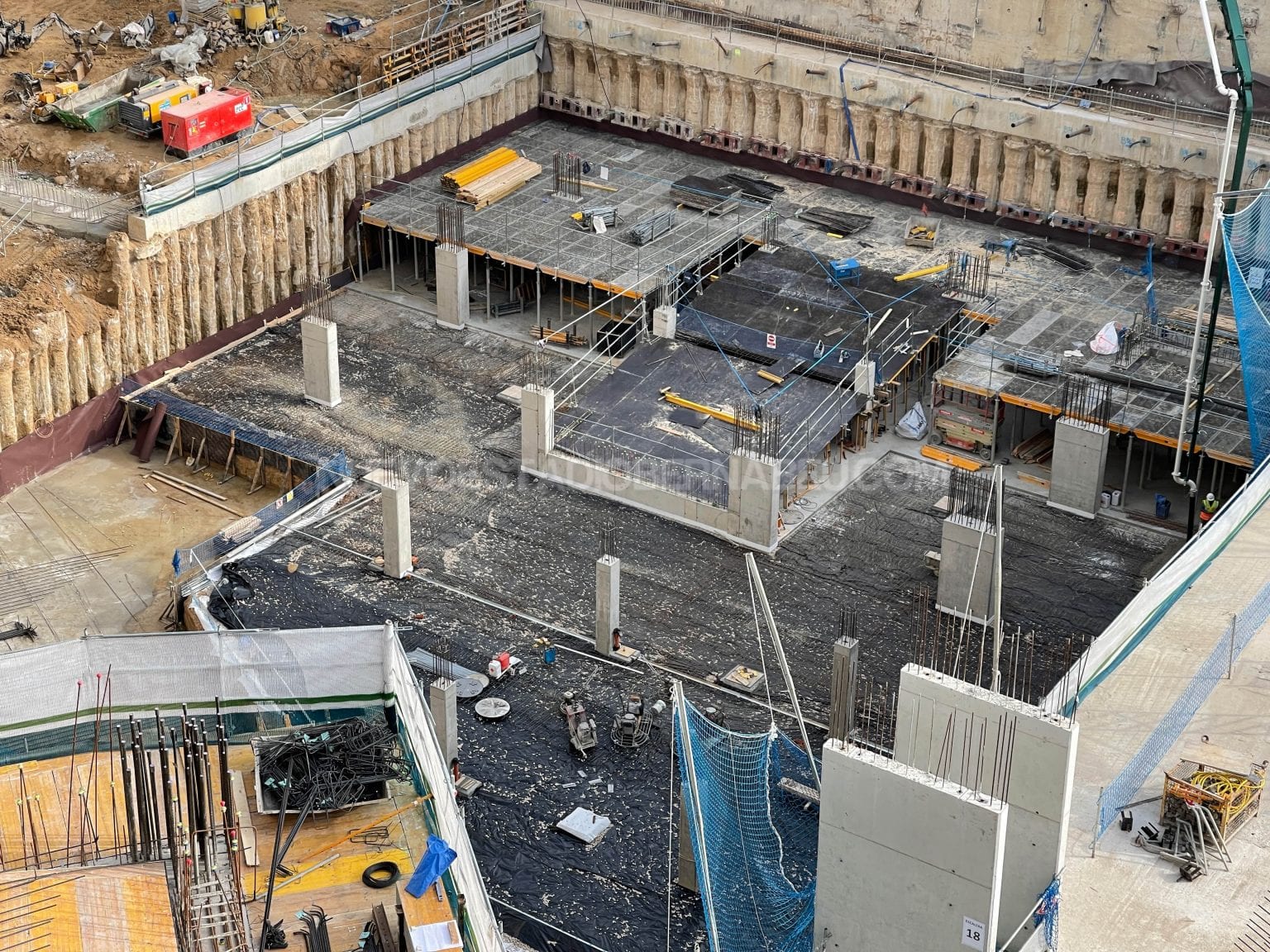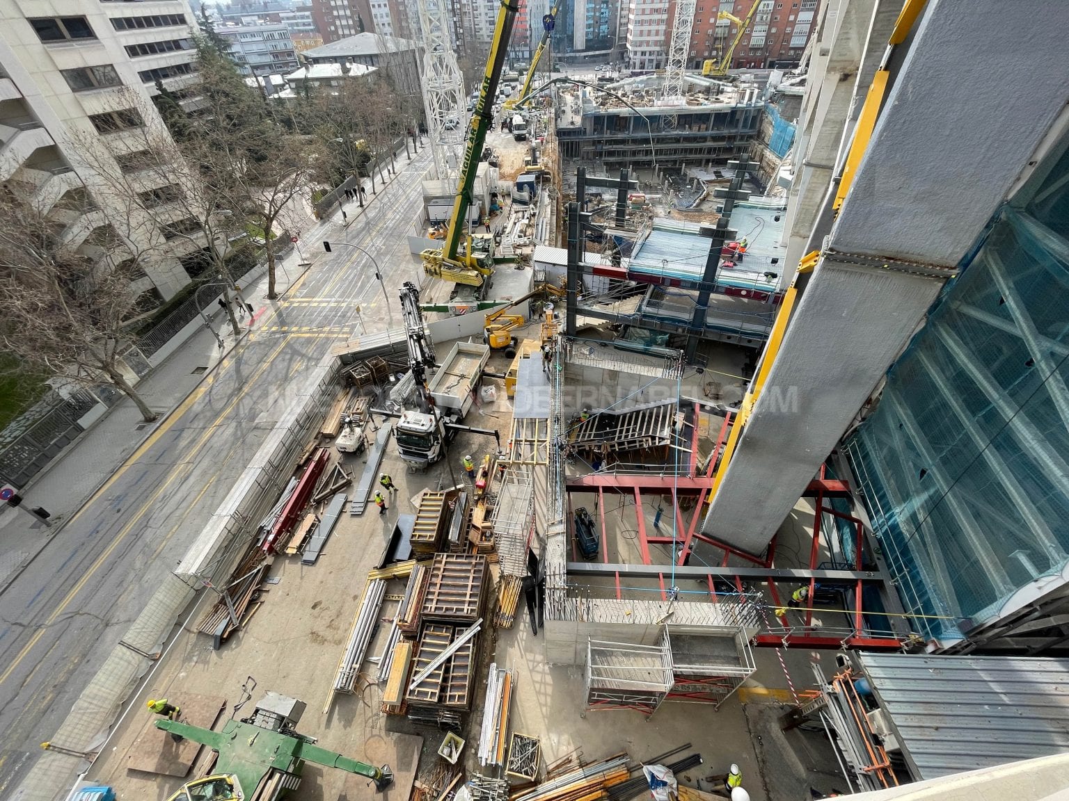 El nuevo parking continúa en un avance largo, complejo y tedioso. La fase I está en un nivel óptimo de terminación pero la fase II y III tienen aún muchas horas de trabajo hasta que veamos cumplido el bloque completo de más de 90 metros de altura desde arranque bajo rasante que formará el conjunto de sótanos más el nuevo edificio este. No es poca cosa, y esta es otra de las actuaciones vitales para el nuevo Bernabéu aunque llegados a este punto de obra todo es vital, todo hace de cuello de botella para la actuación siguiente y así pasan las semanas con una coordinación absoluta en la ejecución de trabajos.
