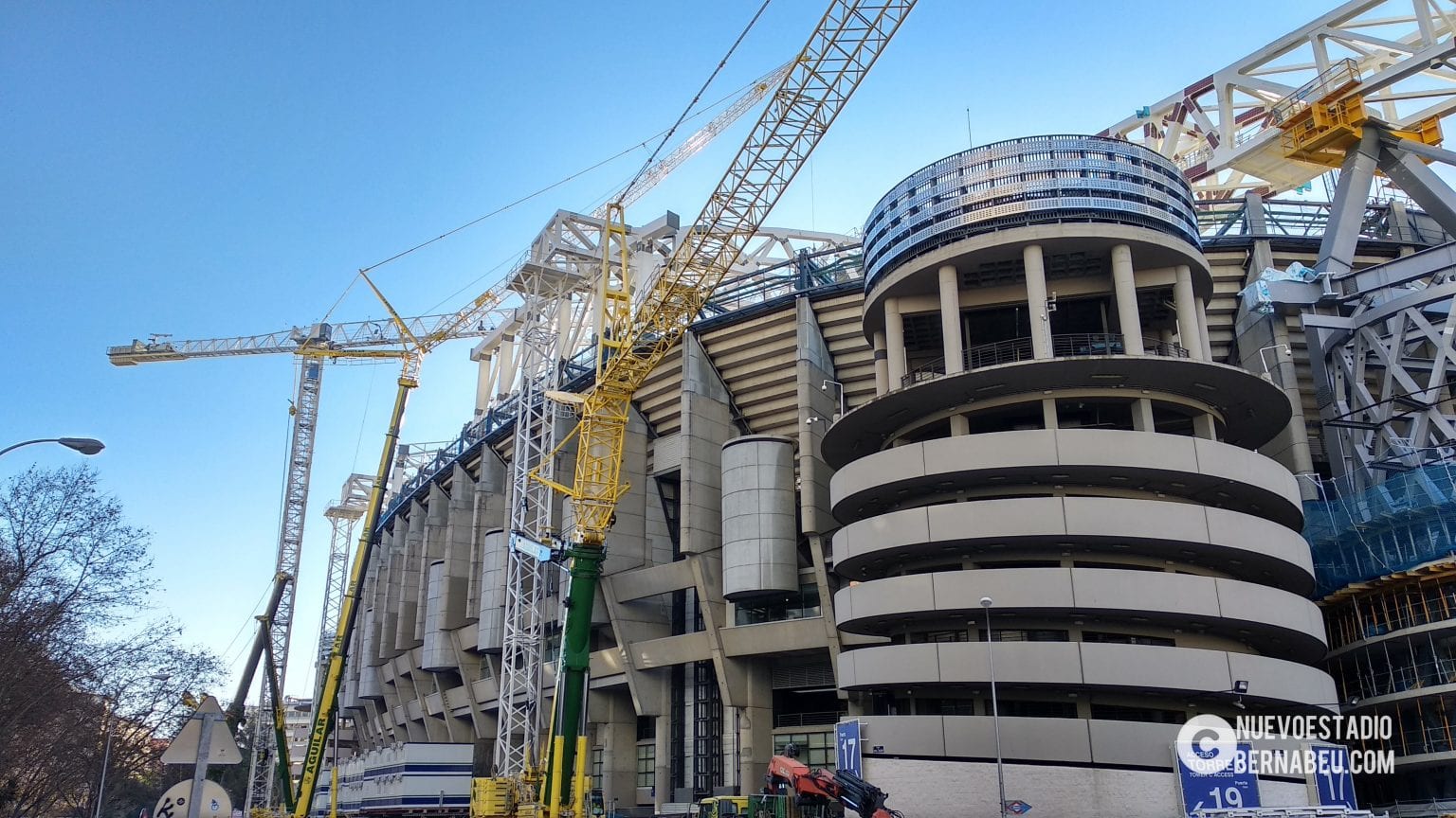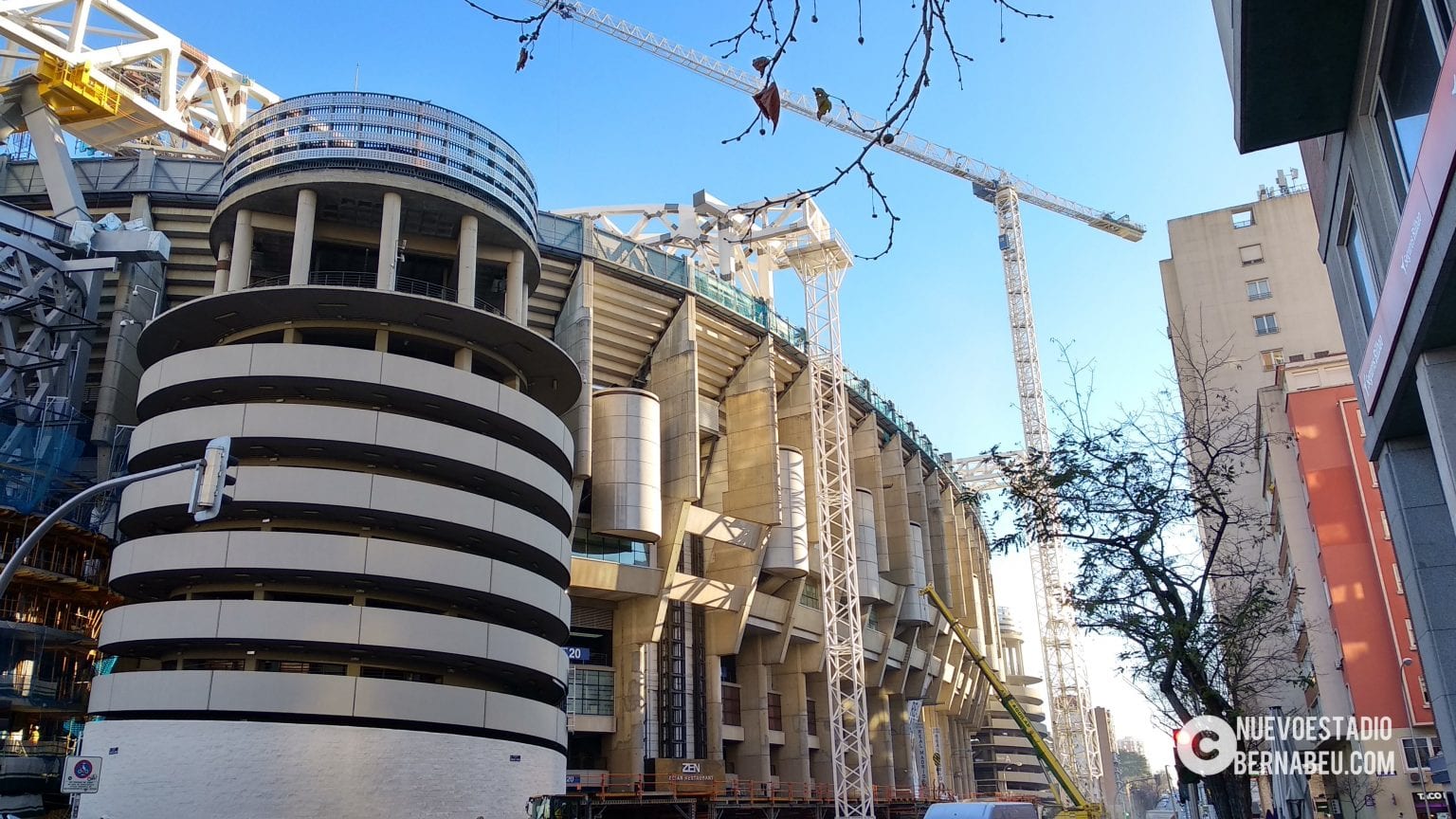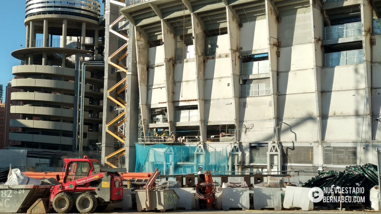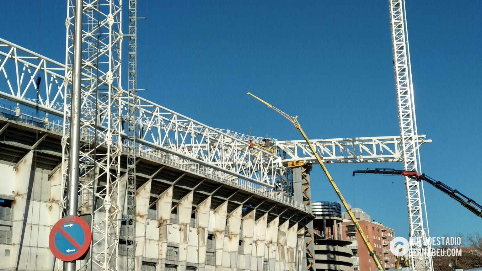 En los alrededores del estadio podemos ver cómo se ha despejado la obra especialmente en Concha Espina donde la retirada del conglomerado de asfalto que se preparó para el desempeño de las grúas en celosía.
