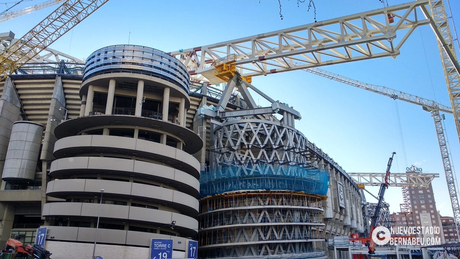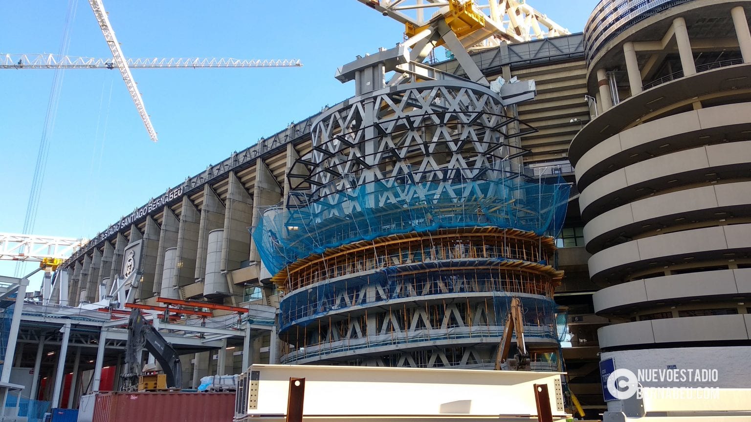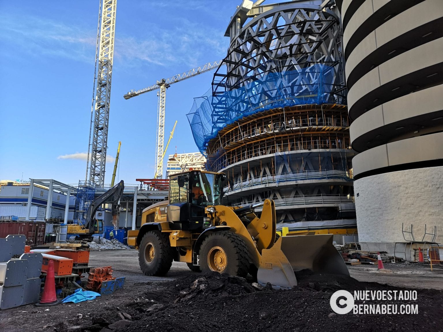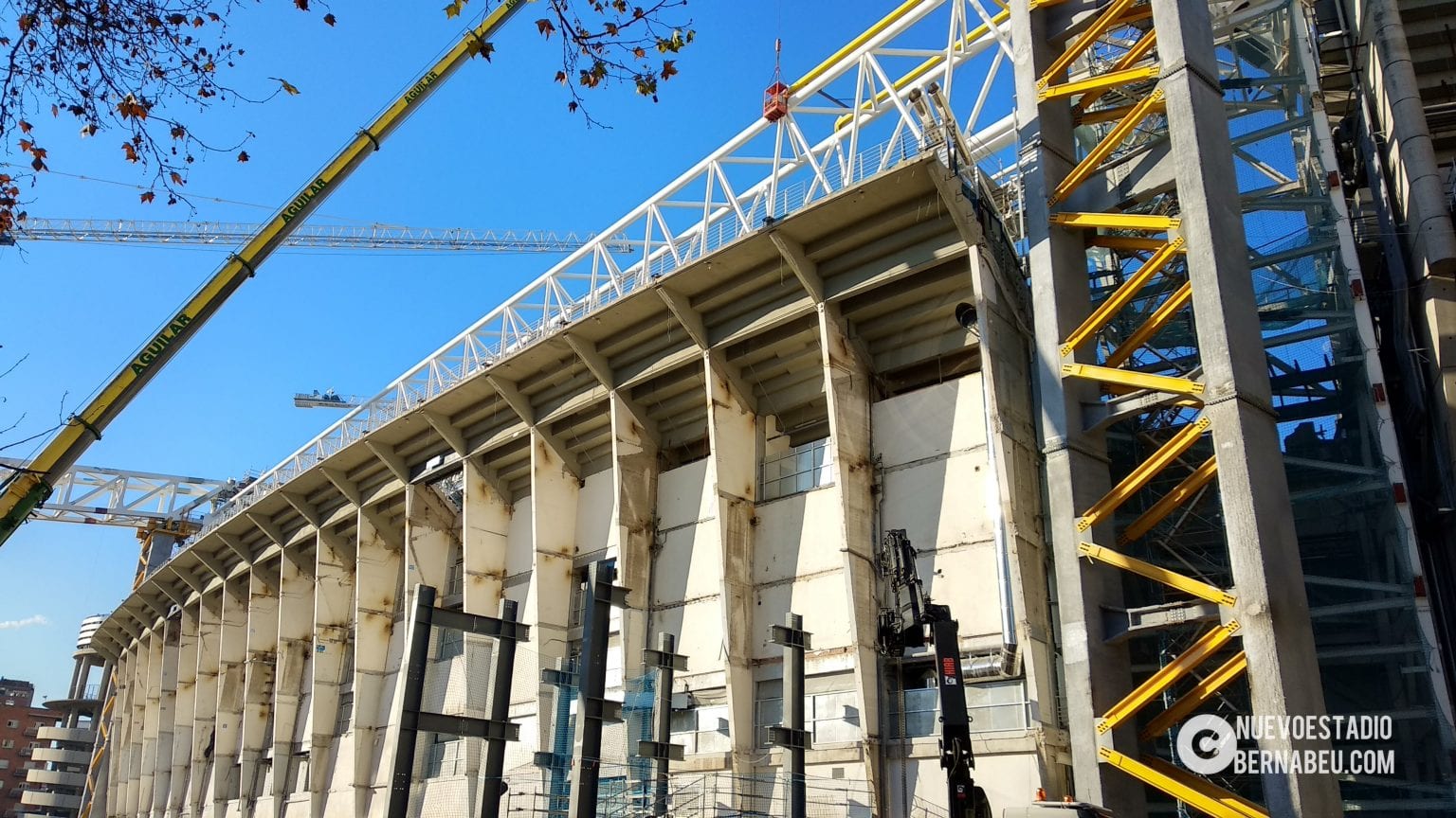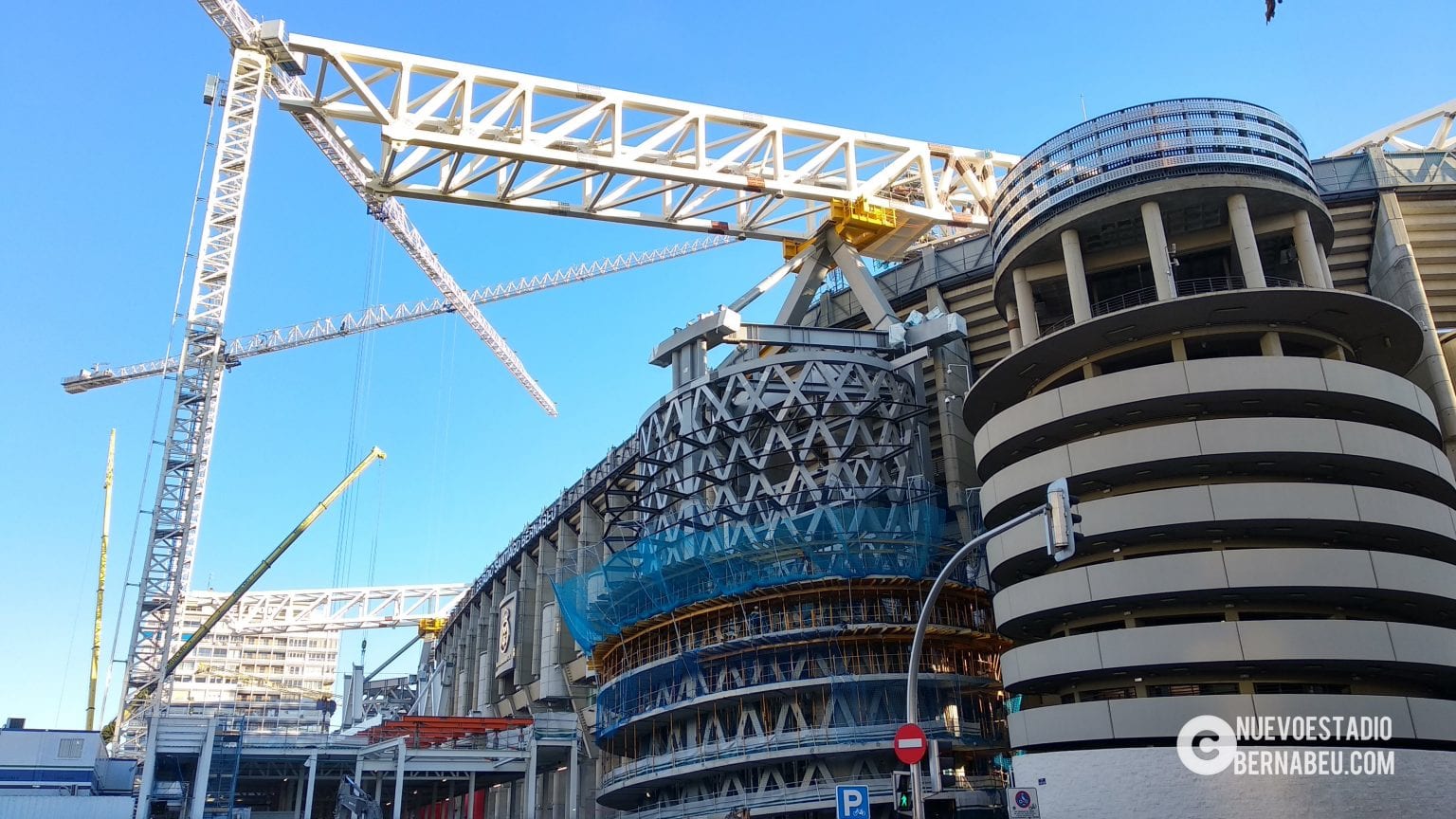 En los alrededores del estadio podemos ver cómo se ha despejado la obra especialmente en Concha Espina donde la retirada del conglomerado de asfalto que se preparó para el desempeño de las grúas en celosía.
