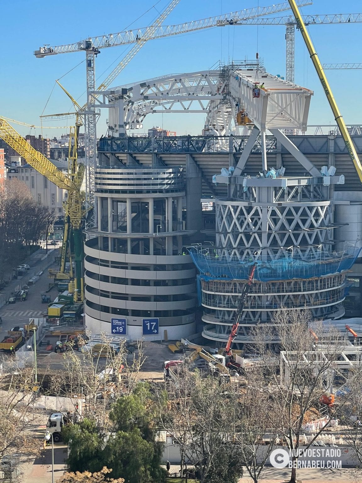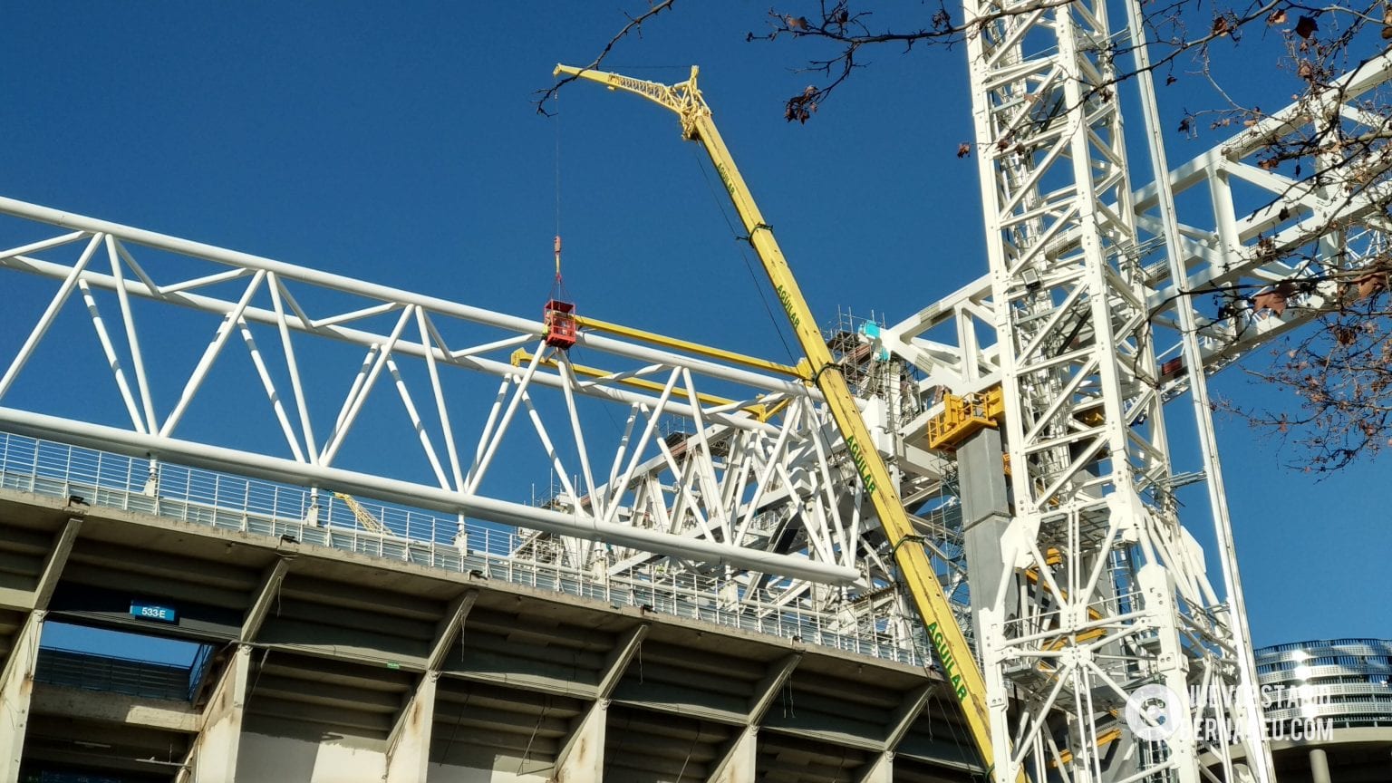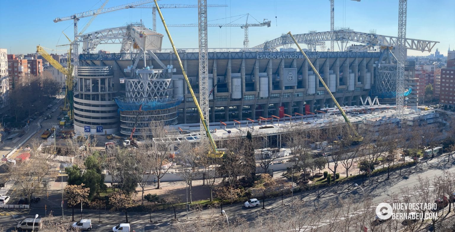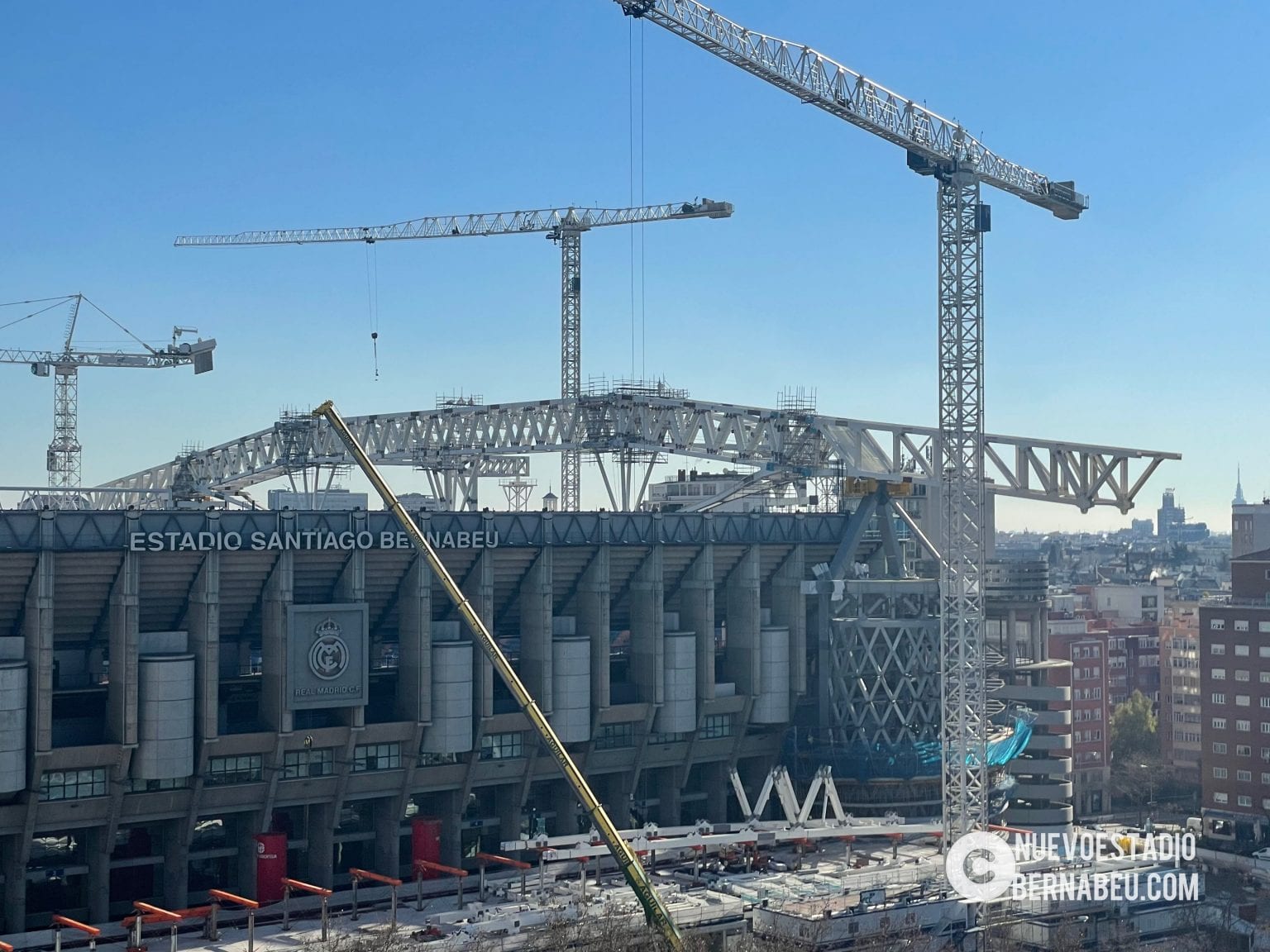 En los alrededores del estadio podemos ver cómo se ha despejado la obra especialmente en Concha Espina donde la retirada del conglomerado de asfalto que se preparó para el desempeño de las grúas en celosía.
