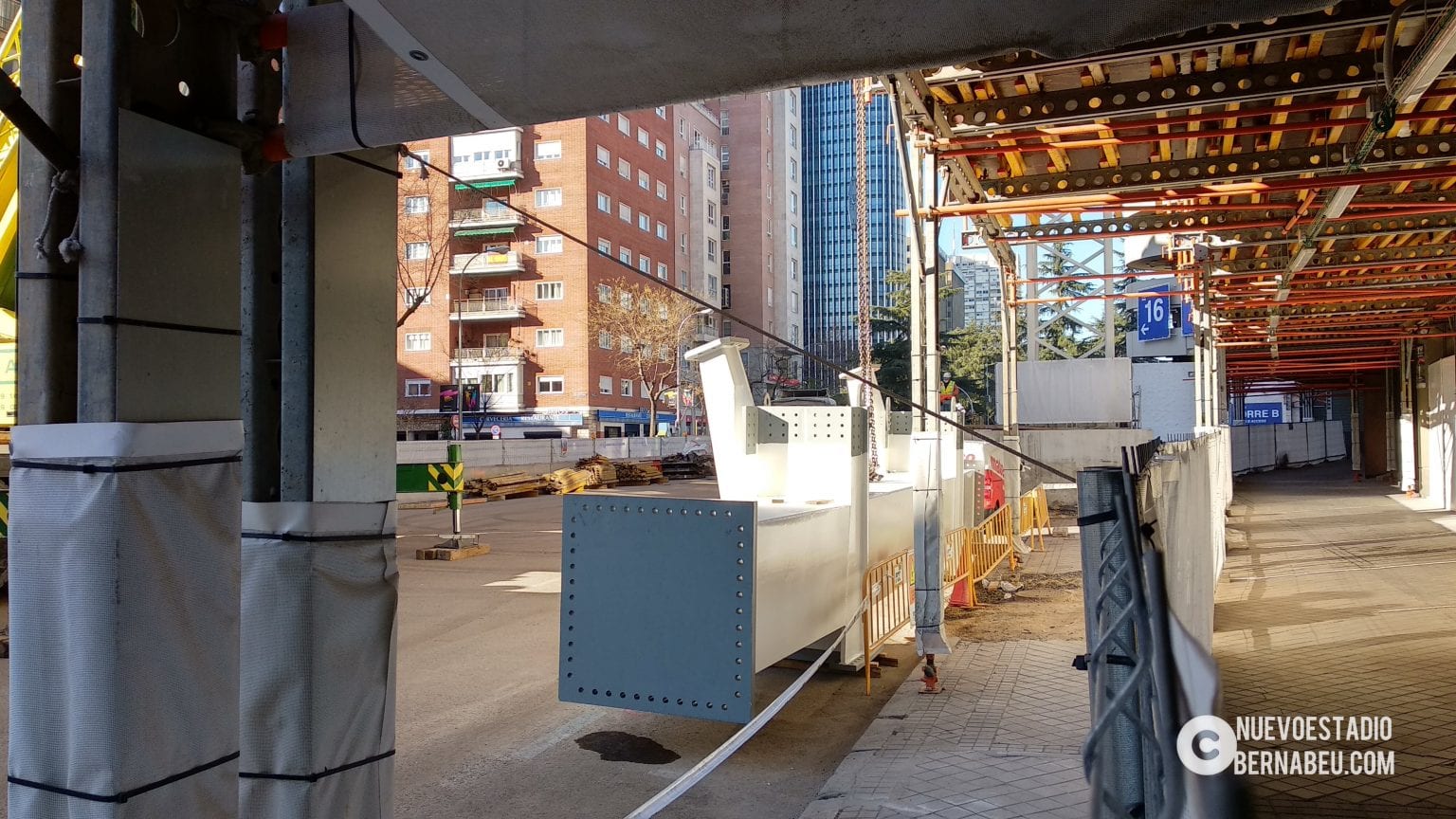 En el Paseo de la Castellana prosigue el montaje de cercha longitudinal sobre la plataforma auxiliar, no habiendo grandes avances en la misma.