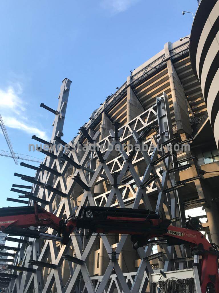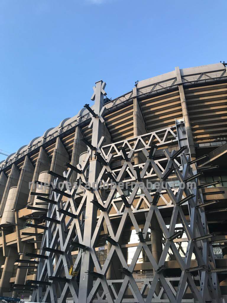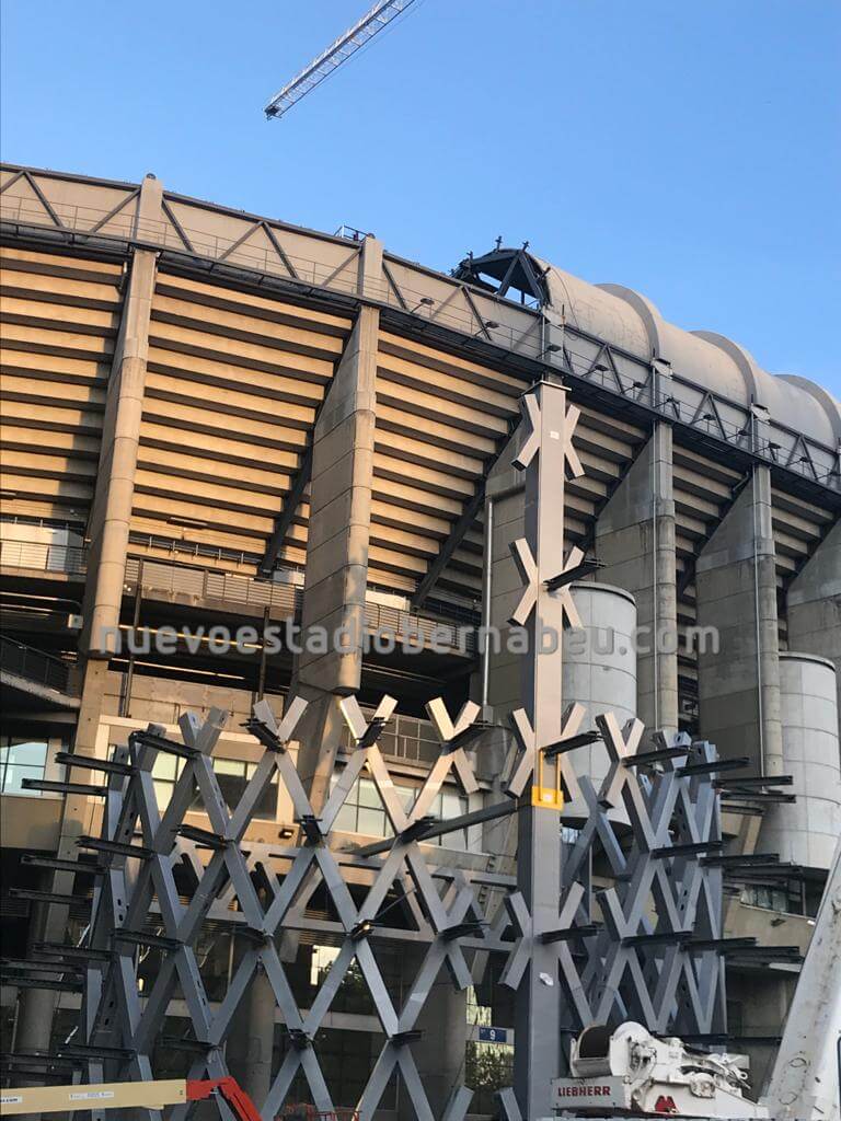 El final de semana nos ha traído una nuevo pisotón al acelerador en el desarrollo de las obras del Bernabéu. Siguen acometiéndose las actuaciones de los últimos días con significativos avances en el desarrollo de las nuevas torres de evacuación del Paseo del Castellana así como en el desmontaje de la cubierta que practicamente está terminado en el fondo norte y avanza ahora desde los sectores sureste del fondo sur.