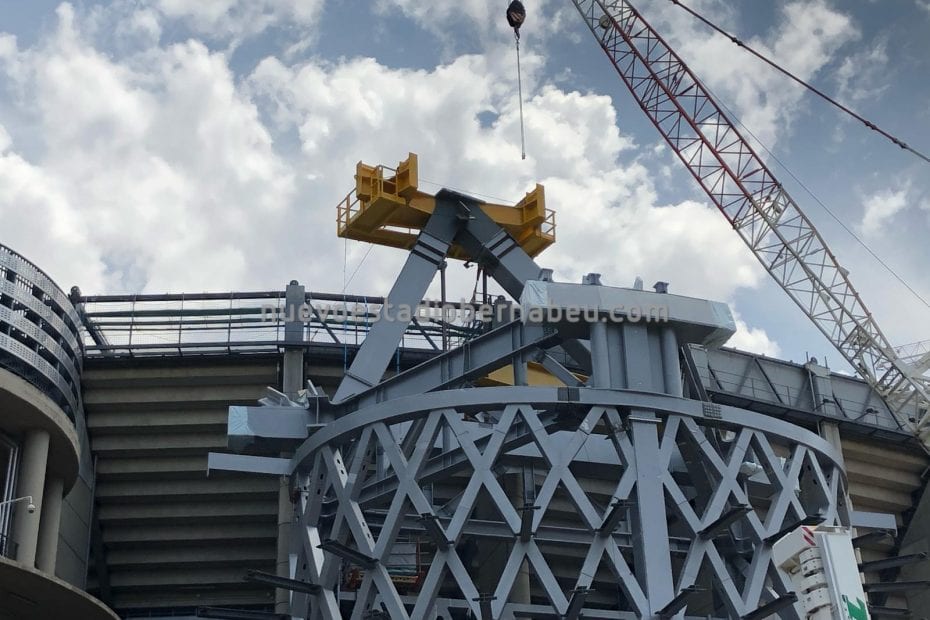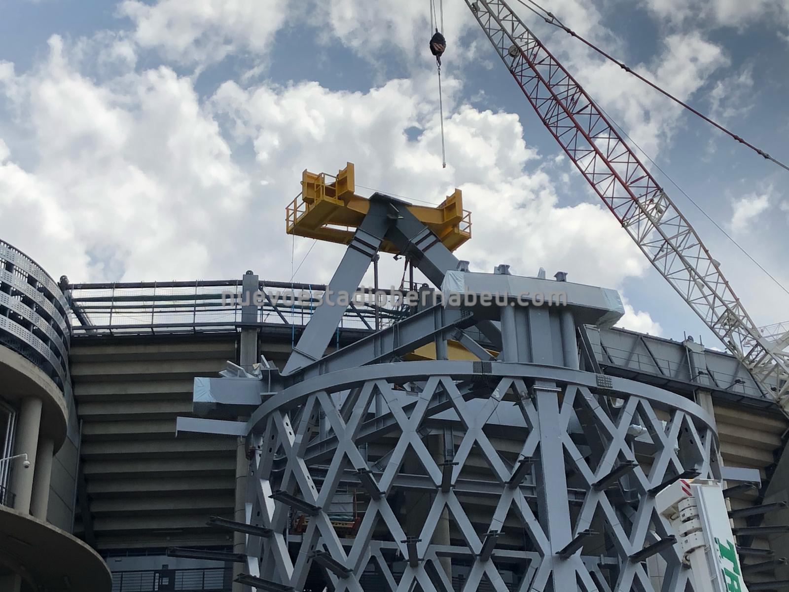 Cada vez me da más en la nariz que van a dotar de simetría al estadio porque parece que las sujeciones para la cubierta van por detrás de los antiguos torreones. Es más, viendo lo bestial y complicado de la obra ya no veo tan imposible igualar el 4º y el 5º anfiteatro.