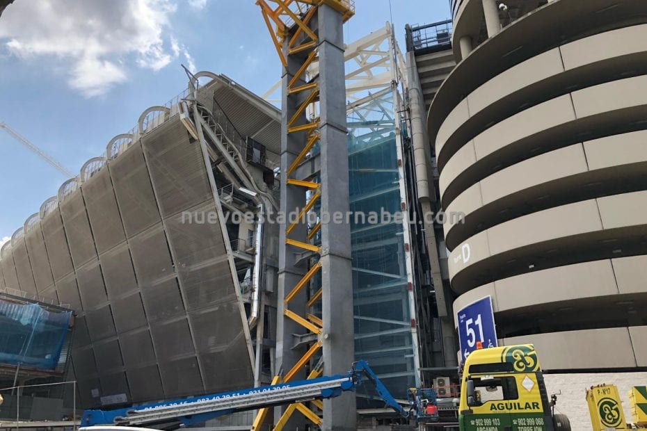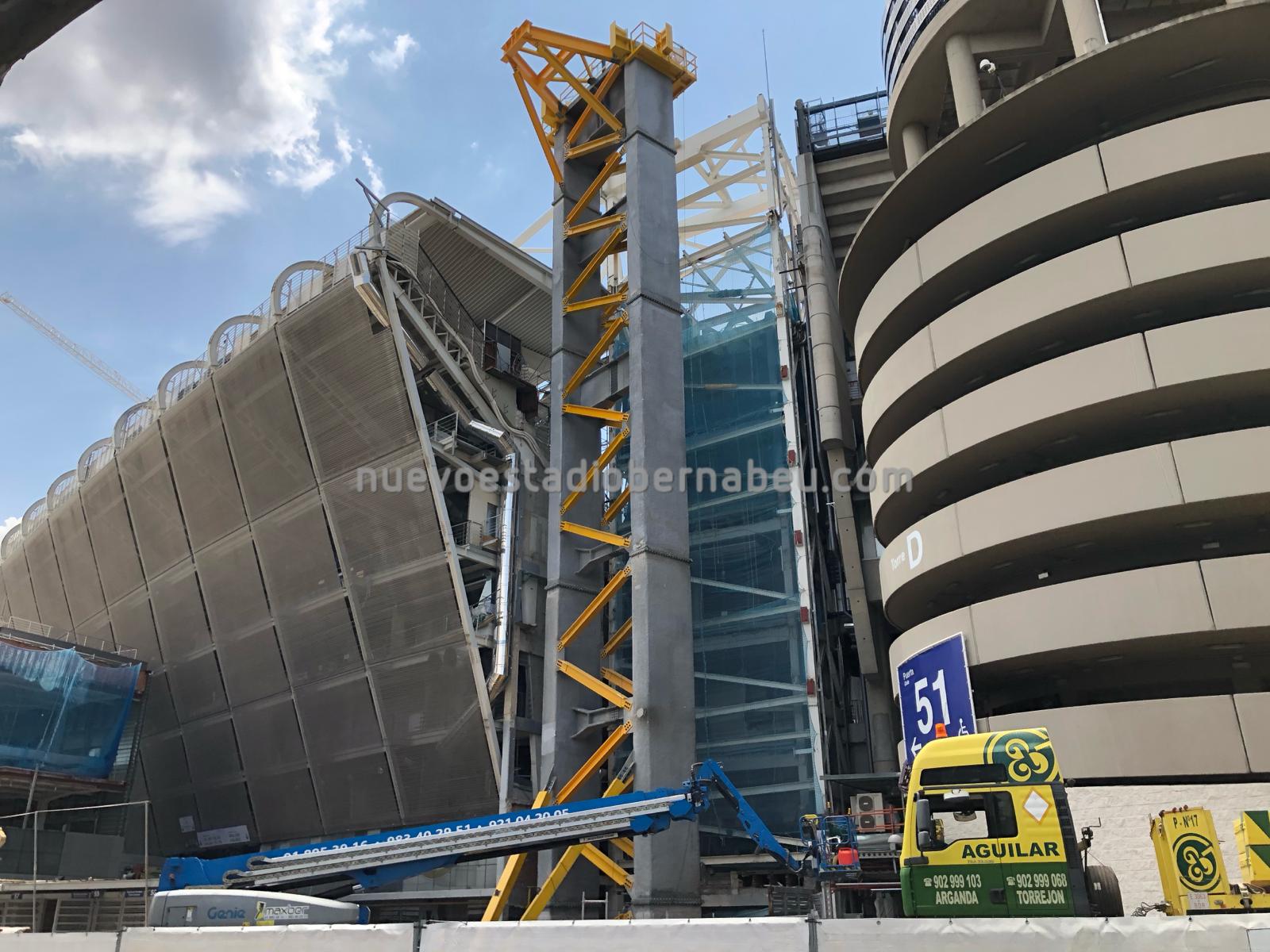 Para que lo van a pintar de blanco si ahí todavía tienen que construir el nuevo edificio multiusos, y aparte después esos pilares irán forrados por la nueva envolvente del Bernabéu. Y no se veran