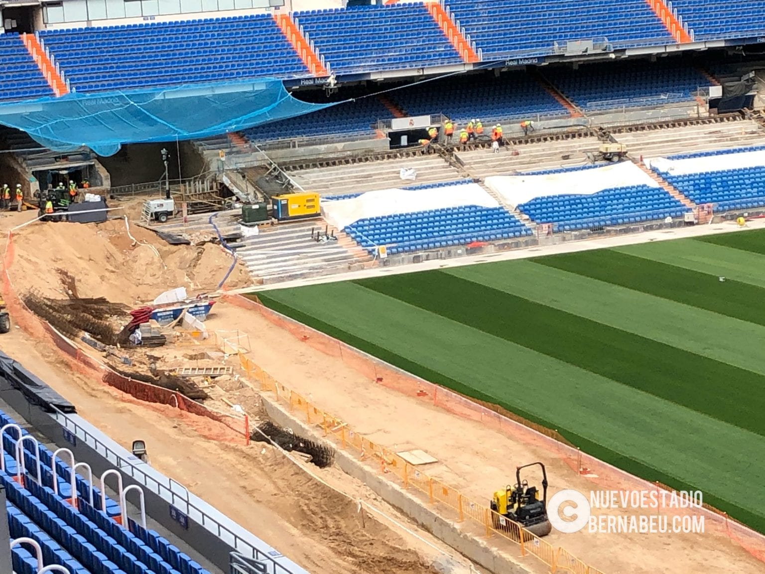 En el interior del bowl continua el movimiento con el avance en el túnel logístico. Además se sigue encofrando la construcción de la grada baja en la que se vislumbra el nuevo acceso para maquinaria pesada que se está construyendo entre los sectores 128 y 130. En el fondo norte también sigue el encofrado de la grada baja una vez se ha avanzado en el sector del túnel logístico que pasa por esa grada, además del nuevo acceso de maquinaria pesada que junto con el que se está adecuando en el lateral este permitirán el acceso de camiones, entre otras cosas, para eventos multitudinarios.