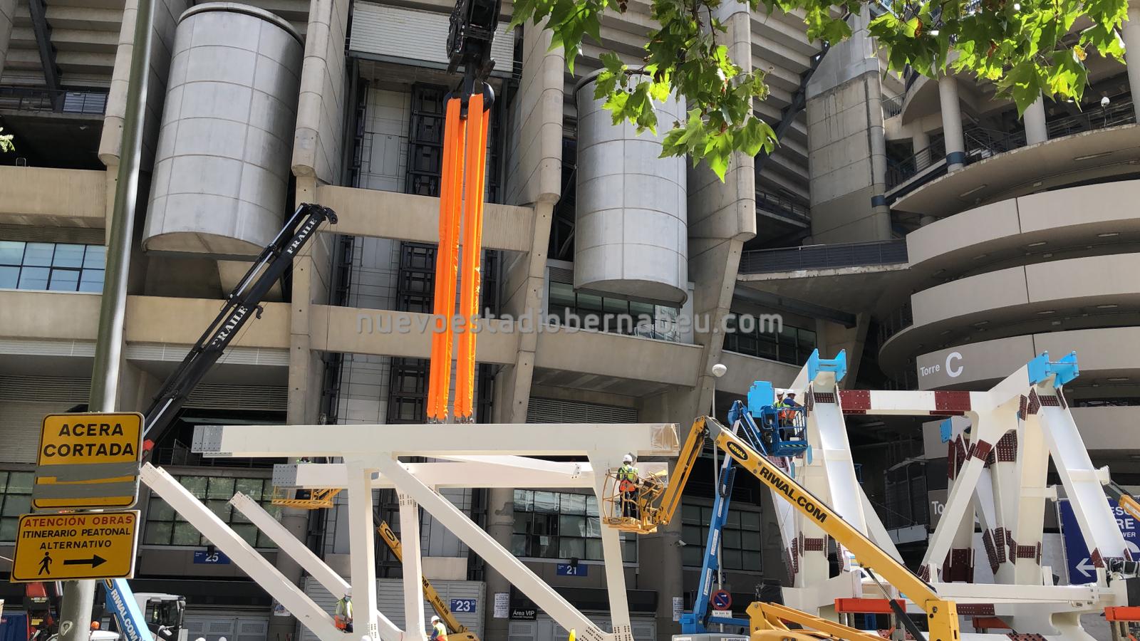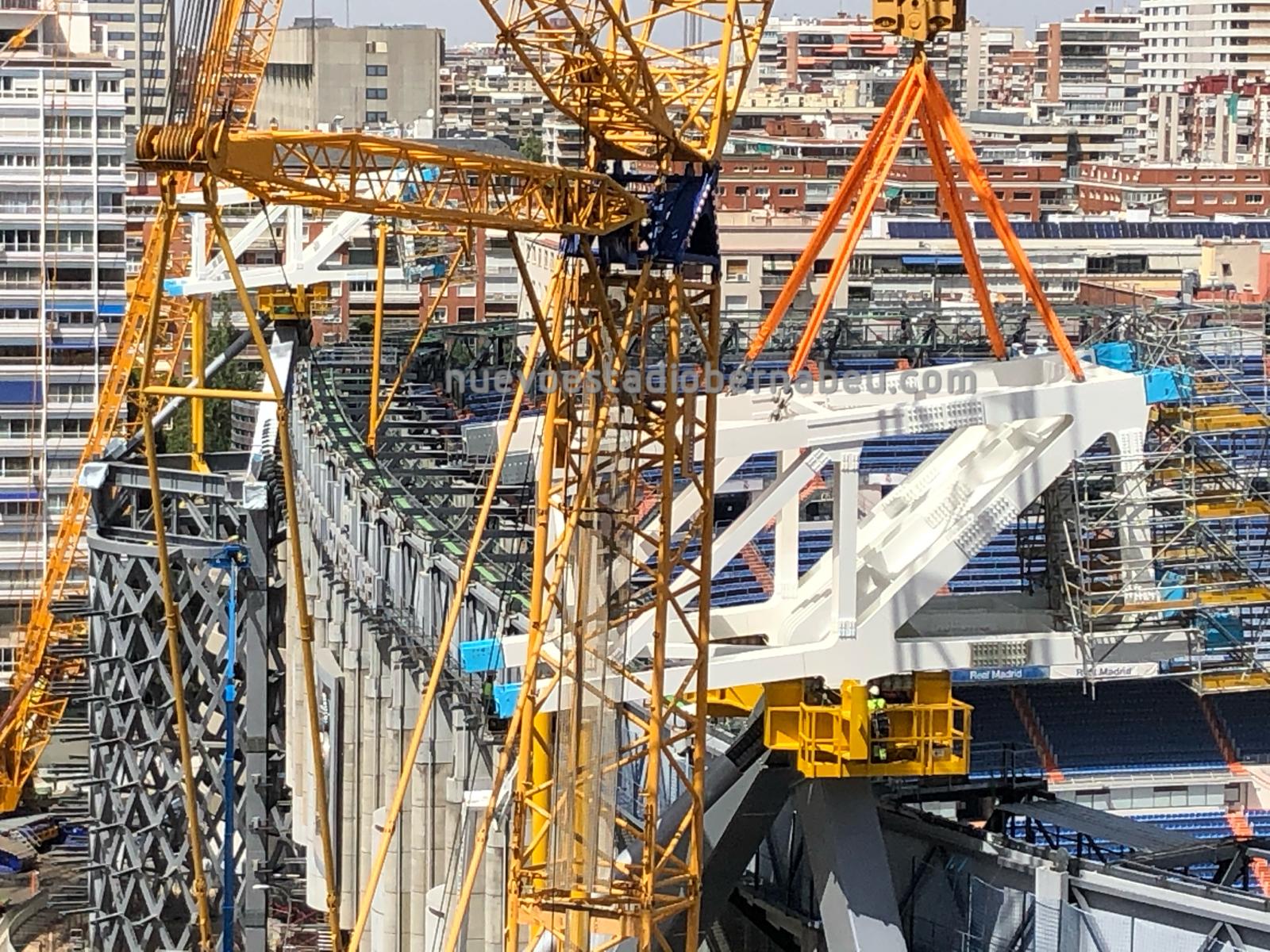 Continuan las obras en el nuevo Bernabéu: primer tramo cercha sur instalada.