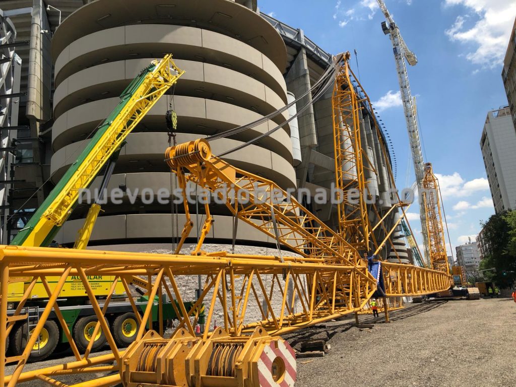 En La Esquina del Bernabéu, sigue la instalación por parte de la «oruga» Liebherr 1600W2 de la grúa torre Potain MD1400 a lo que se unido gran cantidad de maquinaria pesada que se ha reservado en la Calle Concha Espina la cual se ha quedado con un sólo carril en sentido M30.