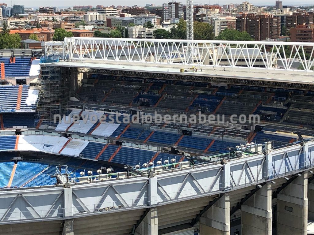 Las obras del nuevo Bernabéu prosiguen a gran ritmo con la casi culminación de las nuevas torres B y C, además del desmontaje casi completo de las cubiertas norte, sur y oeste. Con respecto a las cubiertas norte y sur se están desmontando los petos de apoyo de la estructura metálica que servían de guardianes de los espectadores de las últimas filas del cuarto anfiteatro.