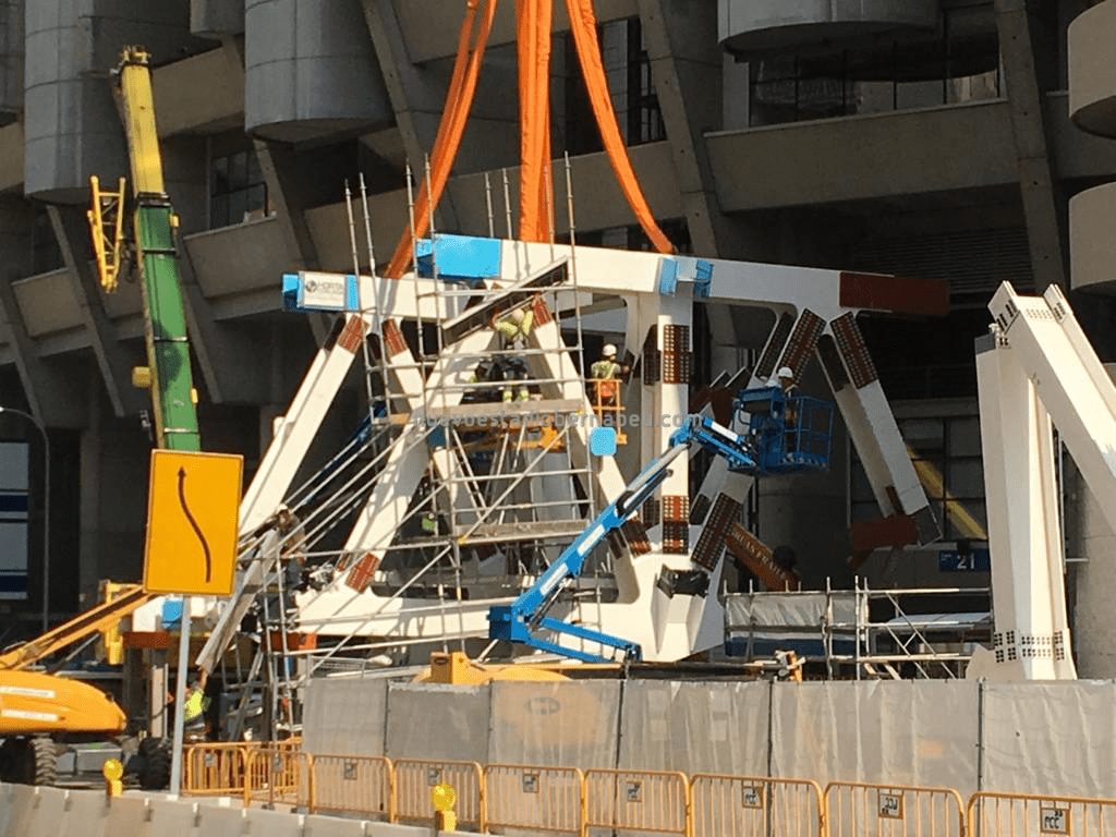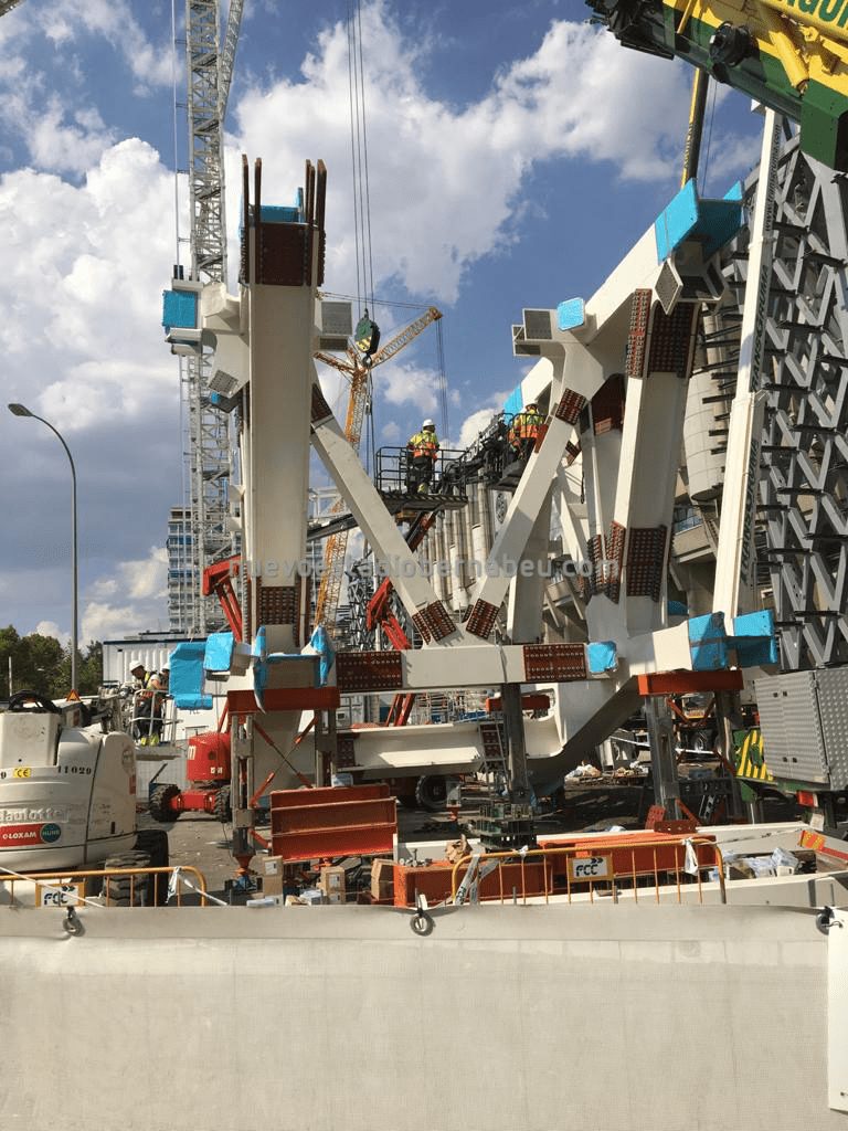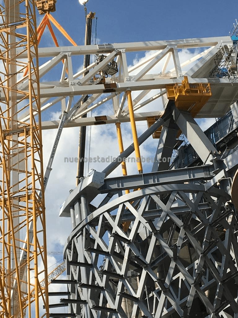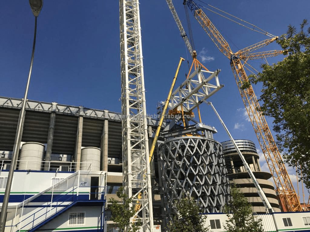 Continuan los trabajos en el nuevo Bernabéu: 2+2 tramos de cerchas y el pilar sur en posición.