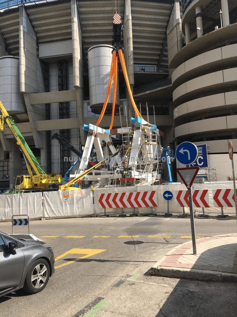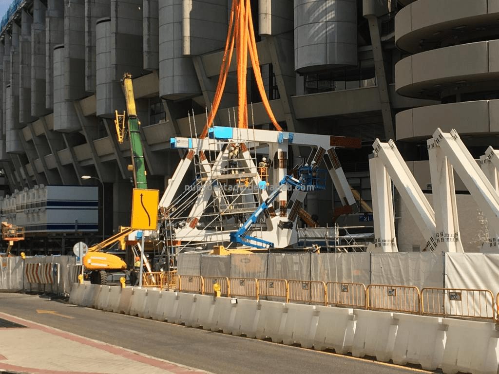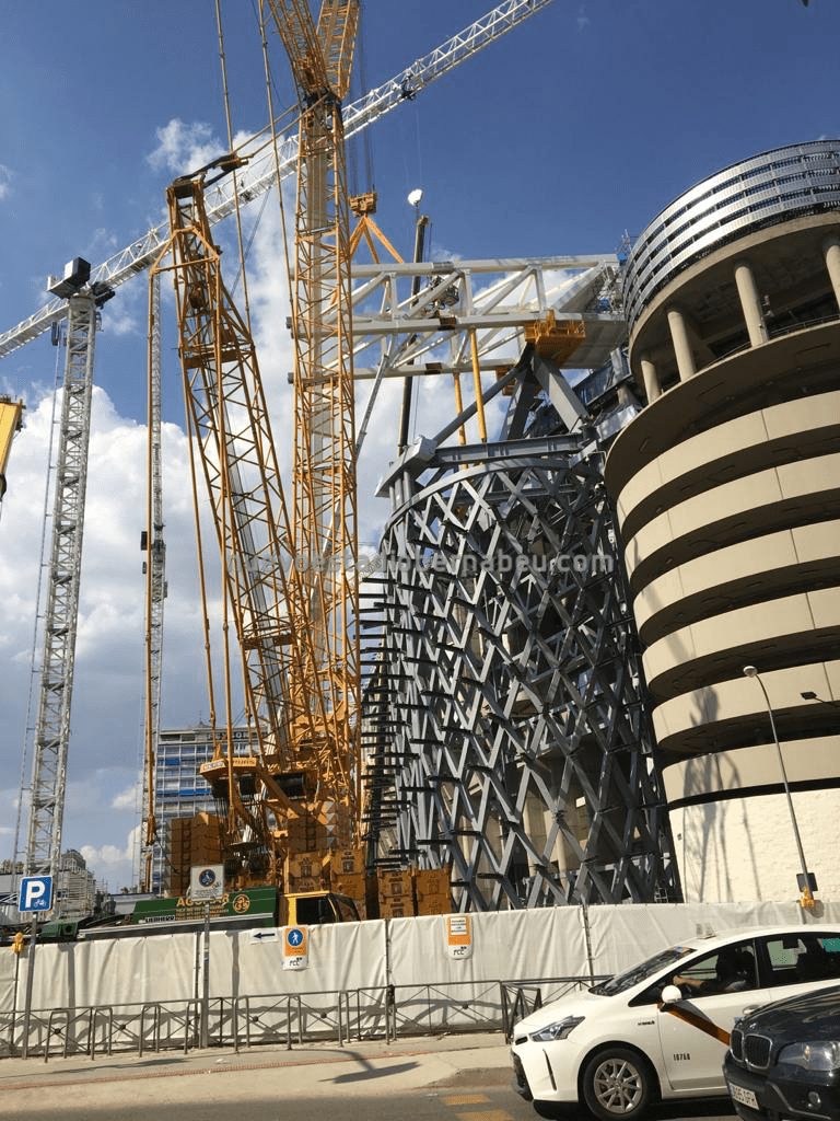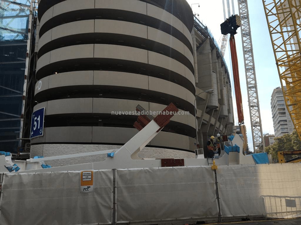 Continuan los trabajos en el nuevo Bernabéu: 2+2 tramos de cerchas y el pilar sur en posición.