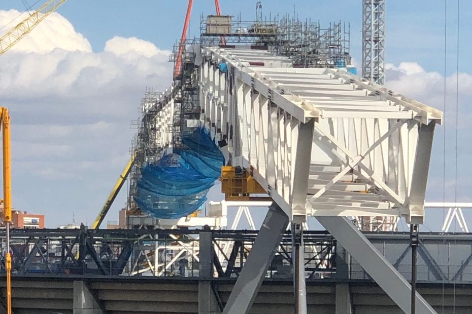 Os traemos una espectacular galería de fotos de los avances que se han producido esta semana. La cercha norte, como os dijimos en la actualización anterior, tiene que ser alineada estando a falta del izado y acople de la clave.