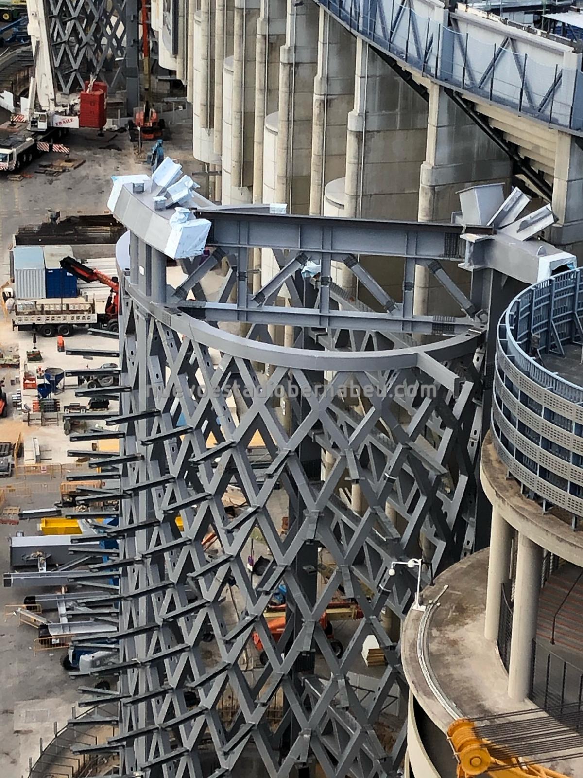 Viendo la publicación de hoy de NEB en instagram, parece que la primera cercha en instalarse será la norte. Ese pilar va muy avanzado y la torre nueva tiene más piezas coronandola.