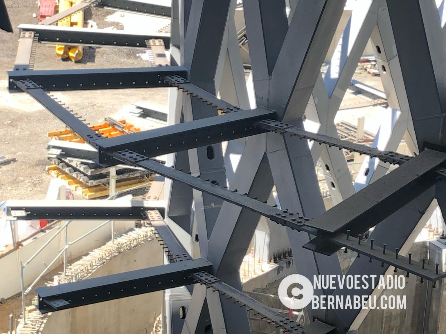 Especialmente espectaculares son los trabajos que se están llevando a cabo en las nuevas torres en las que próximamente se comenzará a hormigonar las rampas de acceso una vez que se haya terminado de instalar las placas de anclaje sobre las vigas metálicas.