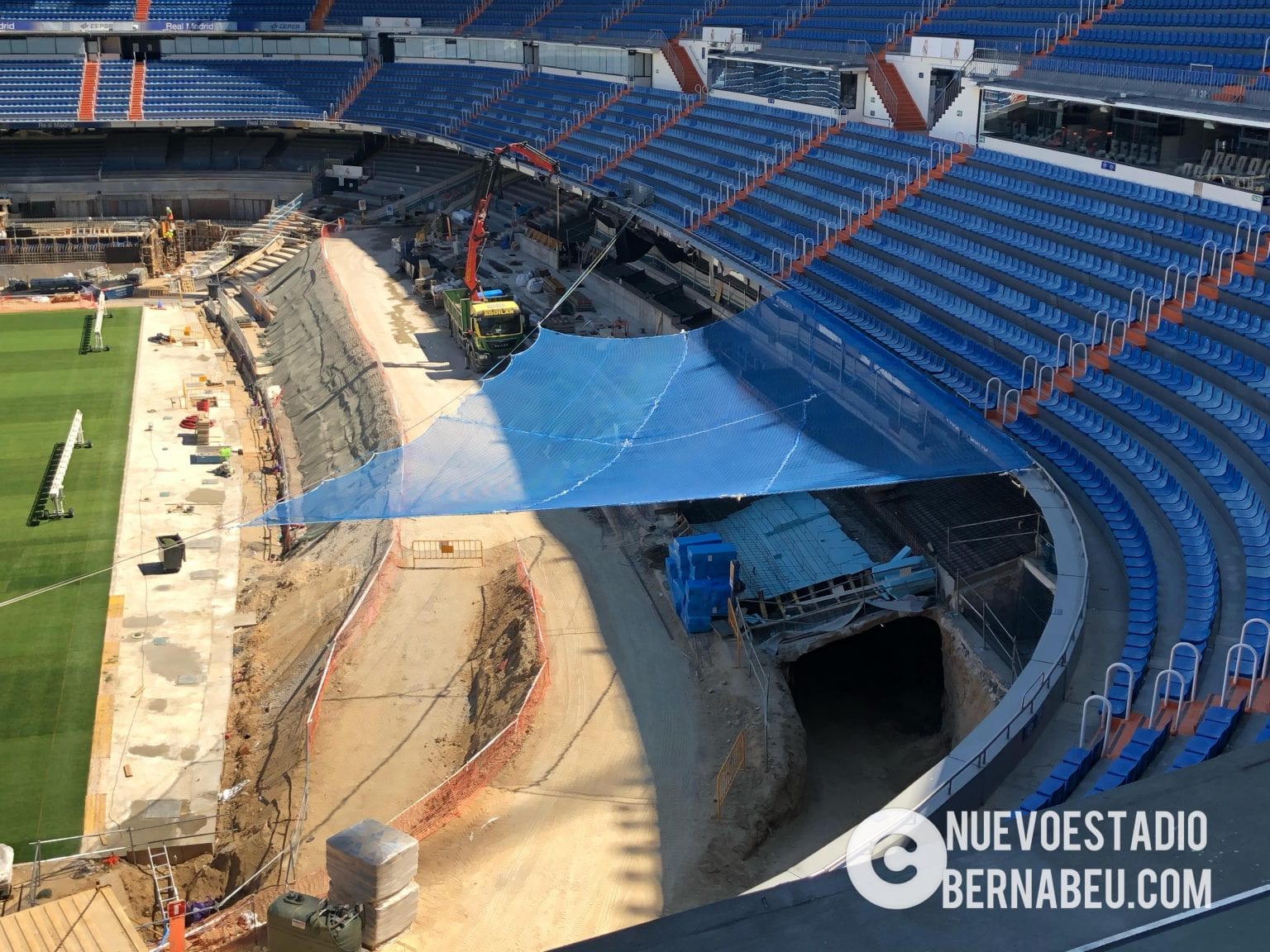 En el habitual recambio del césped que se hace de manera periódica cada verano, se ha añadido una reconstrucción de los servicios adheridos a este con la instalación de un nuevo colector que atraviesa por debajo del terreno de juego, el cual empieza a lucir con la brillantez habitual. El cuidado del césped del Santiago Bernabéu es especialmente complicado por la falta de soleamiento durante muchas fases de la temporada (ver aquí artículo al respecto) algo que este año no ocurrirá. Sin cubierta, el césped recibirá la luz del sol que habitualmente no recibe.