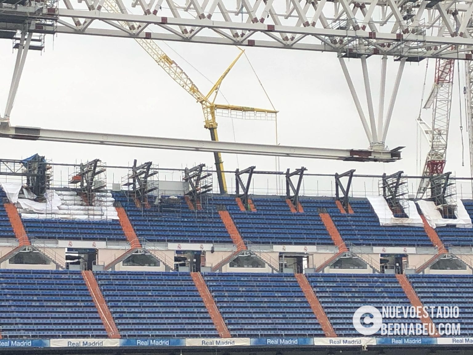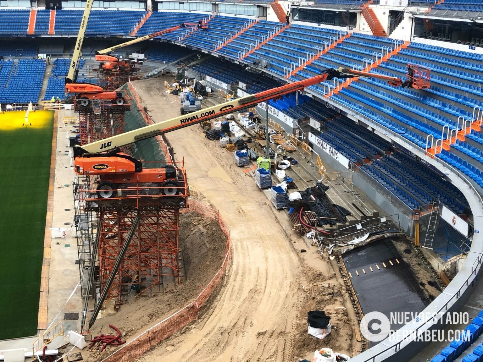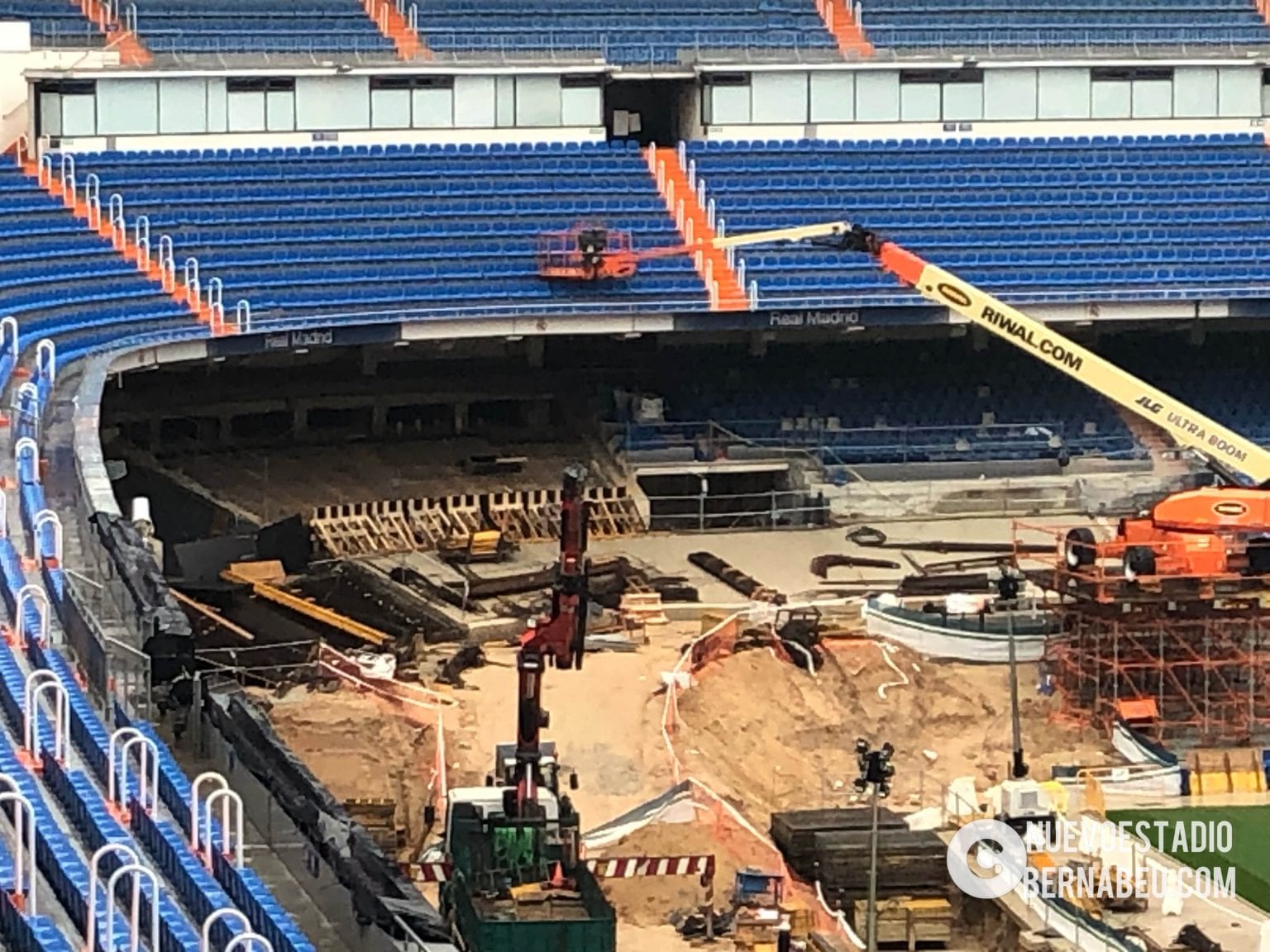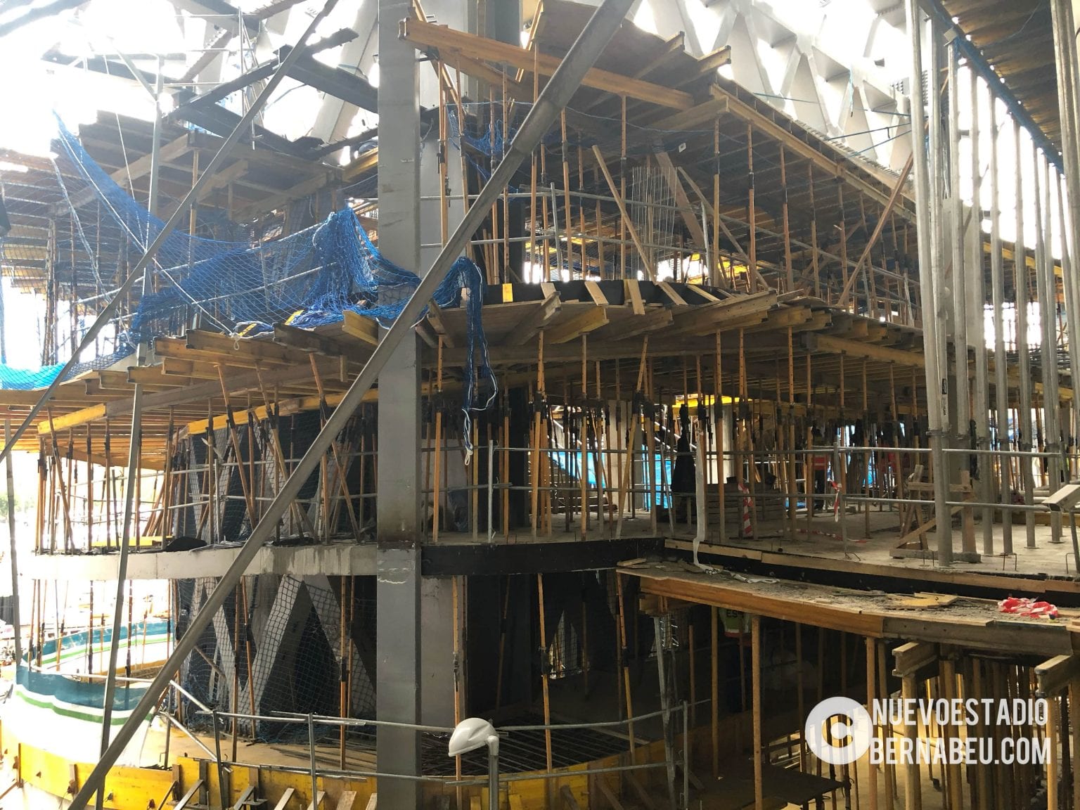 En el cuarto anfiteatro de los fondos se están preparando los andamios para trabajos de refuerzo con pilares metálicos que ayudarán en el montajes de las extensiones de arranque de las cerchas transversales norte-sur.