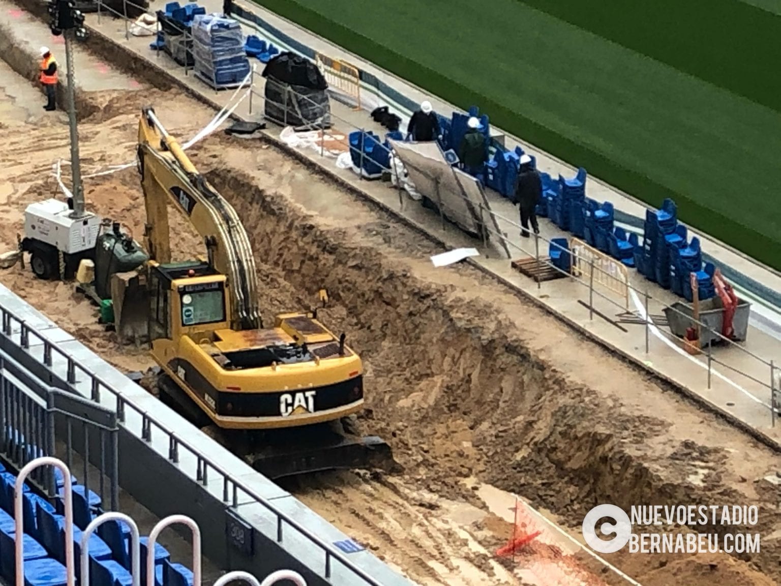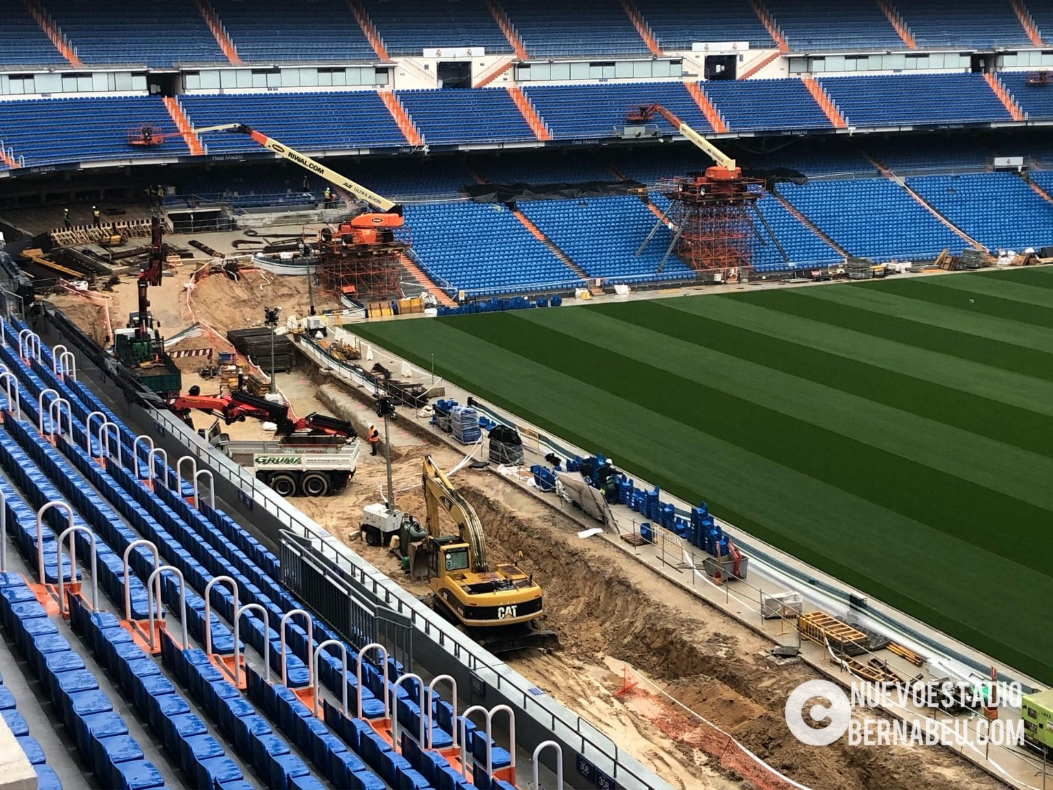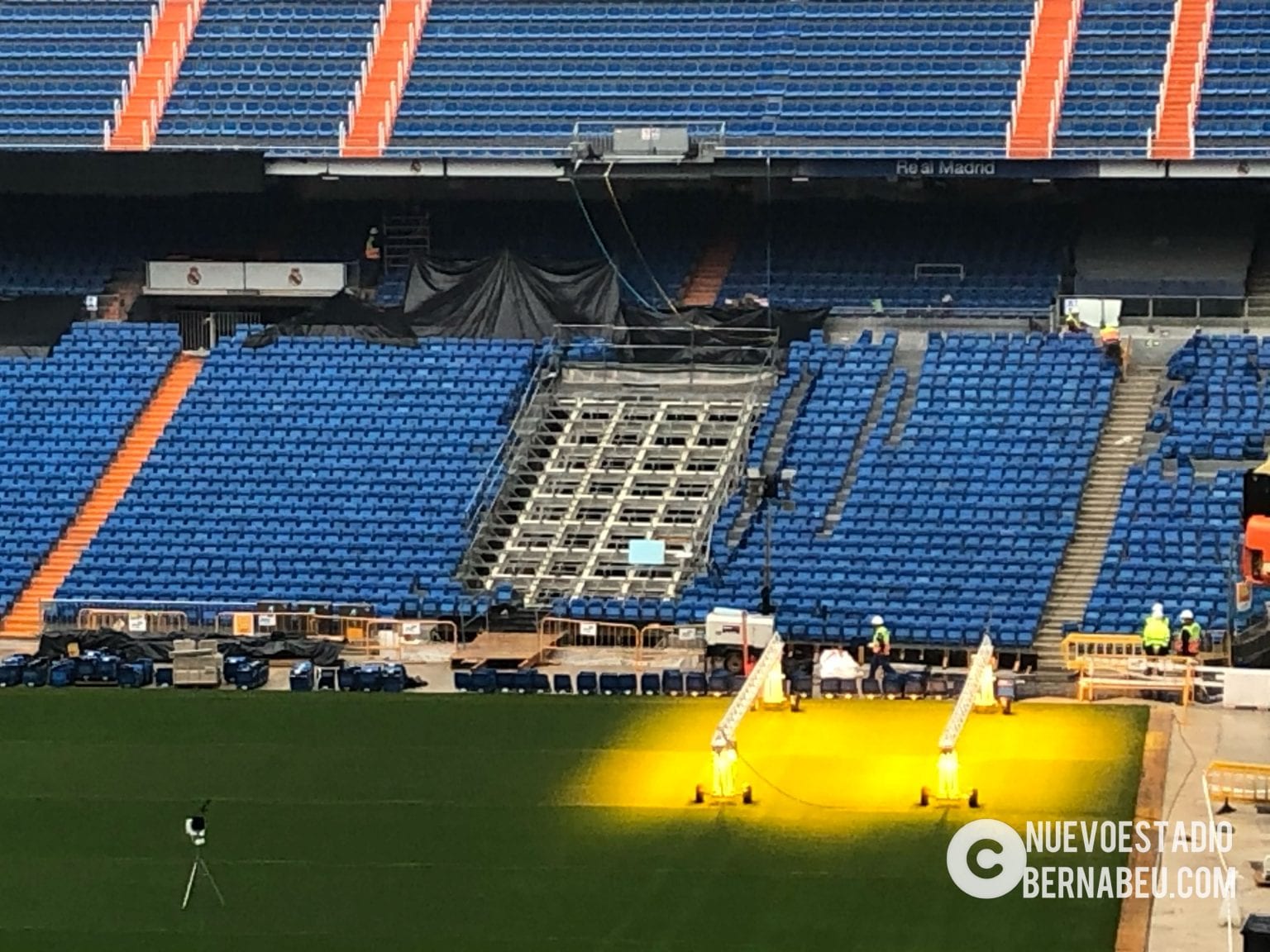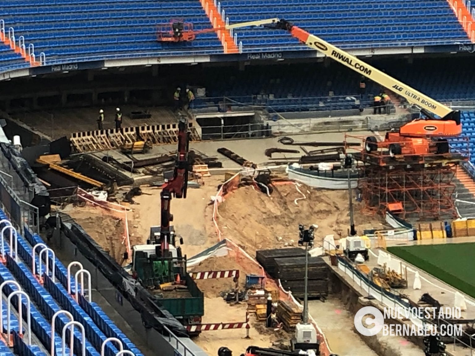 En el cuarto anfiteatro de los fondos se están preparando los andamios para trabajos de refuerzo con pilares metálicos que ayudarán en el montajes de las extensiones de arranque de las cerchas transversales norte-sur.