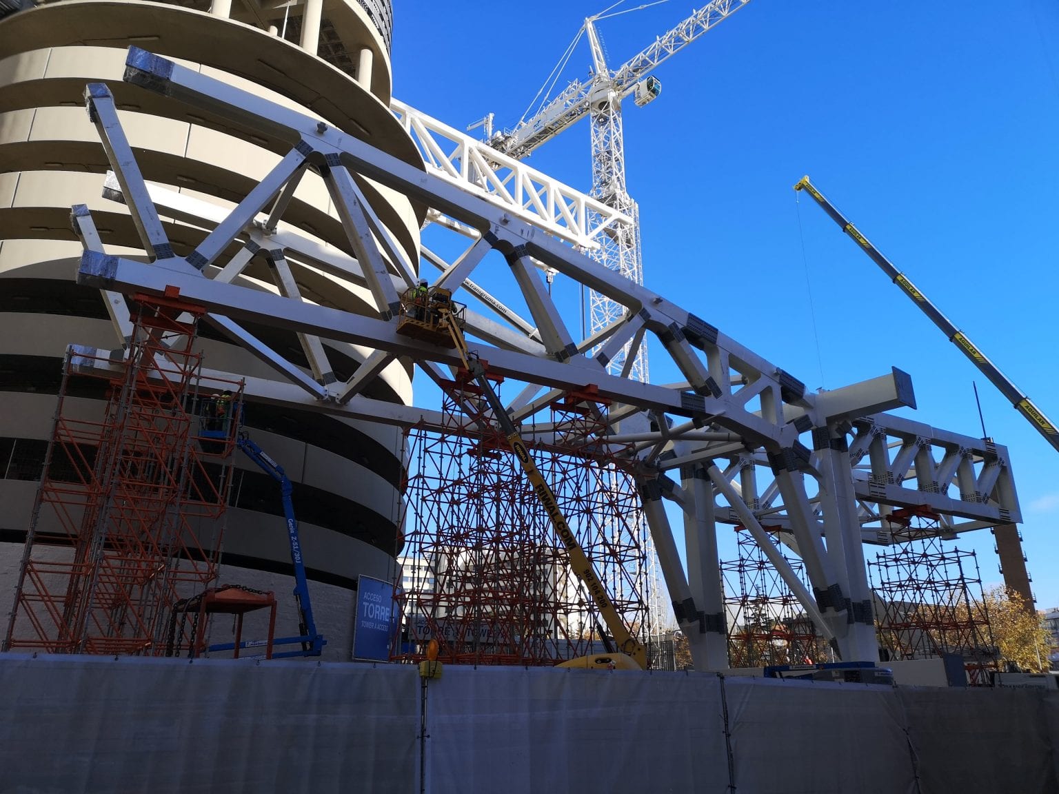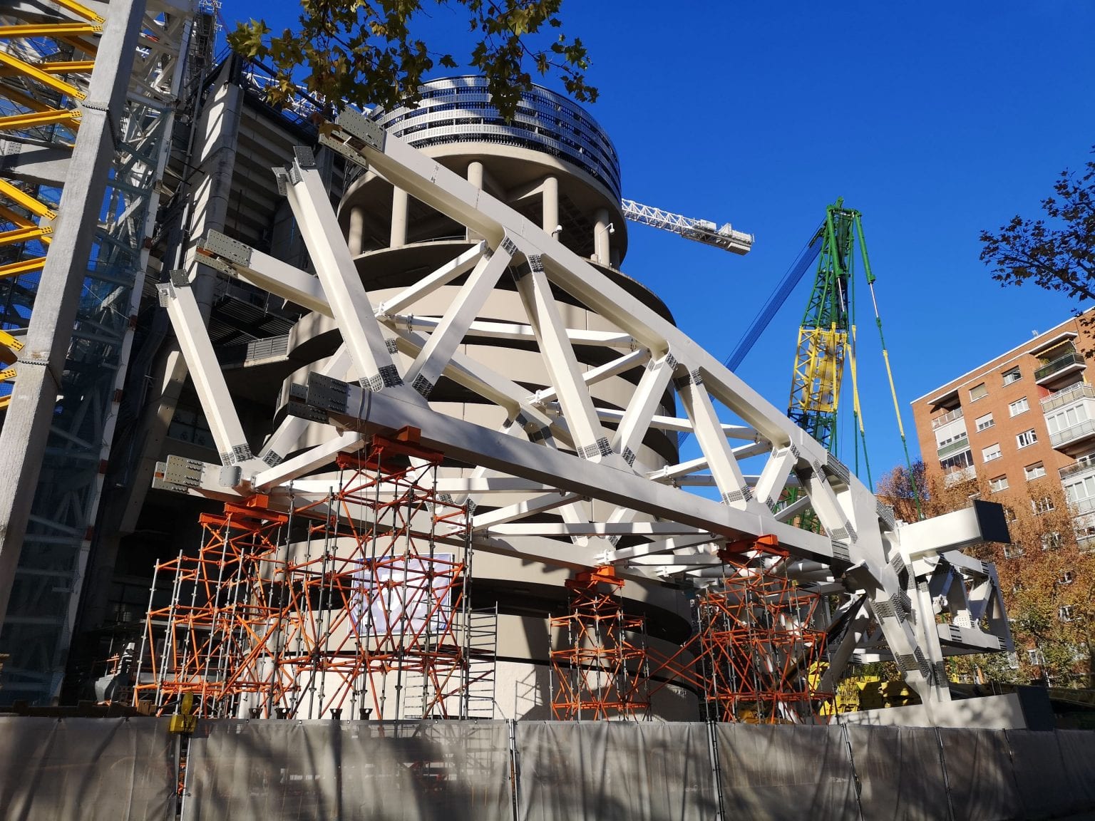 Nueva actualización del avance de la obra del nuevo Bernabéu en la que se ha llevado a cabo una de las actuaciones más espectaculares de las últimas semanas: el izado de la extención C que está en pleno apriete y ajuste durante todo el fin de semana.