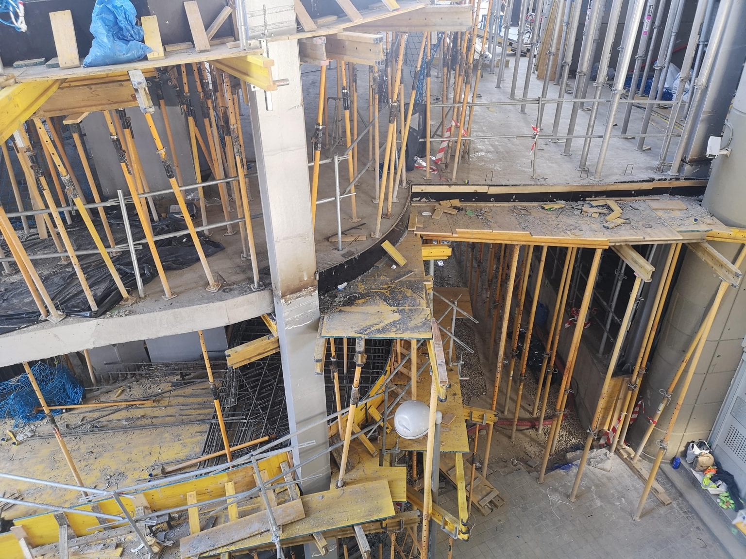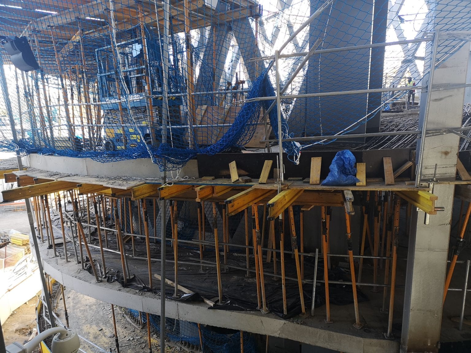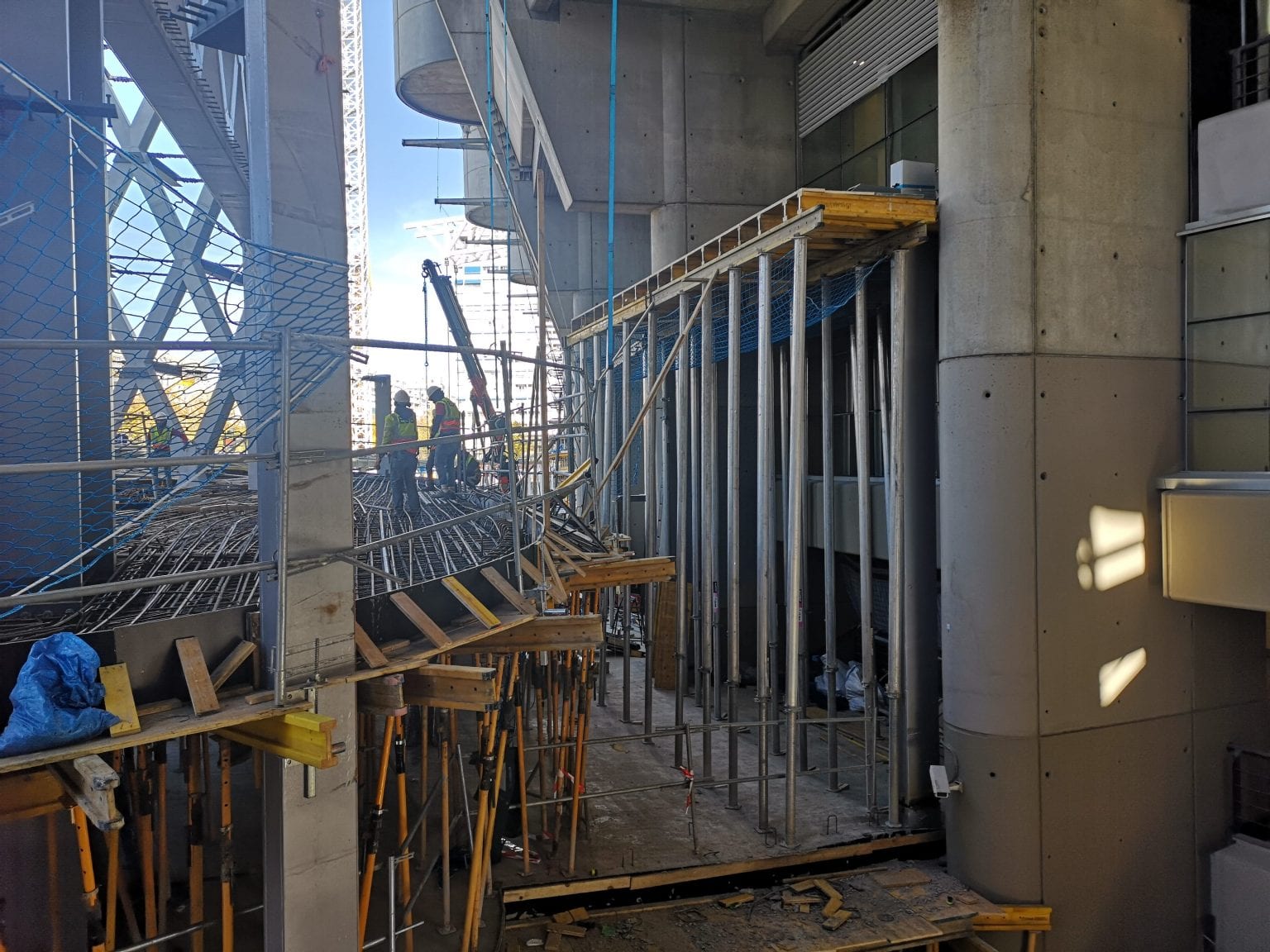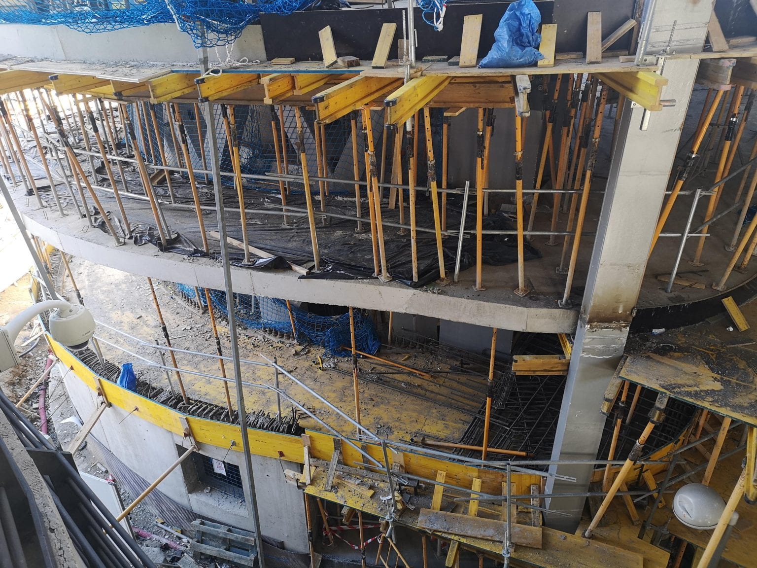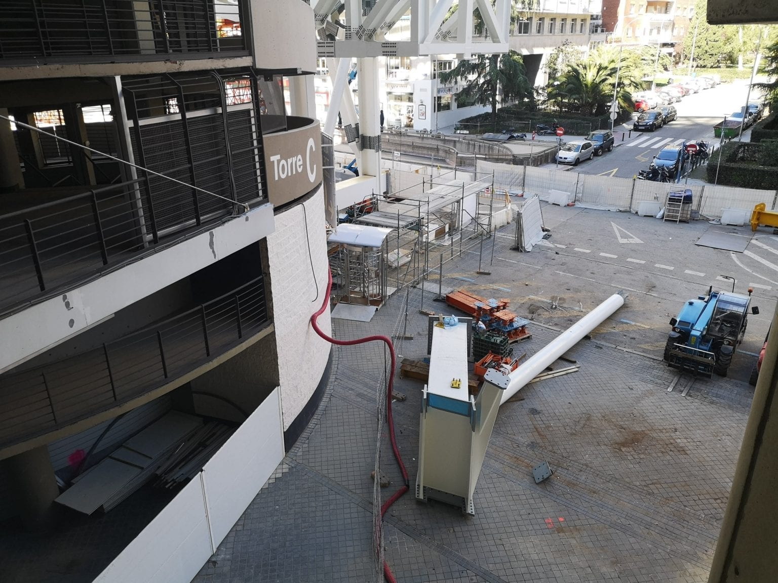 Las nuevas torres siguen creciendo a buen ritmo, ganando prácticamente un ascenso de nivel por semana. En la torre C la estructura está en el nivel 4 mientras que la rampa perimetral ha ascendido del nivel 3 al 4. Mientras en la torre B la estructura está a nivel 3 y la rampa perimetral crece del nivel 2 al 3.