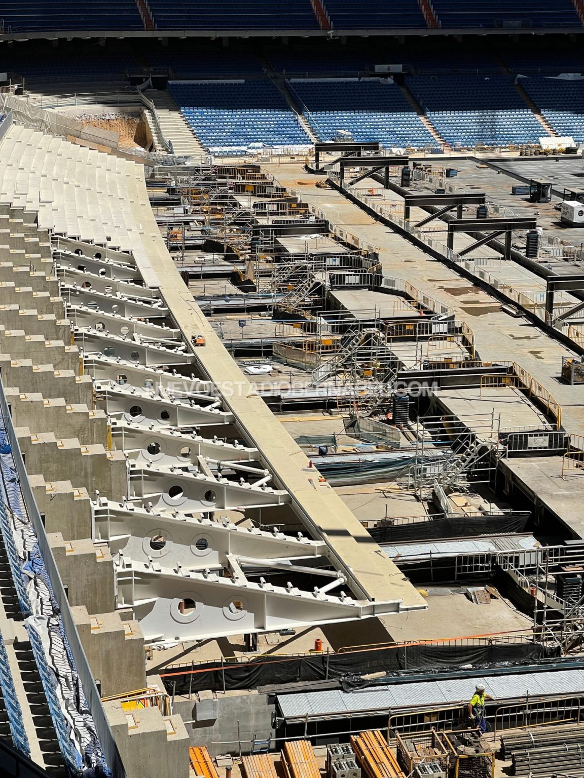 Os dejamos una montón de material gráfico de los últimos días en los que podéis ver los avances en distintas zonas de actuación del estadio. Avances en estructura y lamas de fachadas, demolición y habilitación de espacios, trabajos en el hipogeo con la espectacular apertura de la tapa con la mira puesta en las 6 bandejas del césped las cuales no toman razón del tamaño en las fotos, reconstrucción de vestuarios y palco, Durante esta semana podemos ver las primeras lamas en fachadas norte y sur.