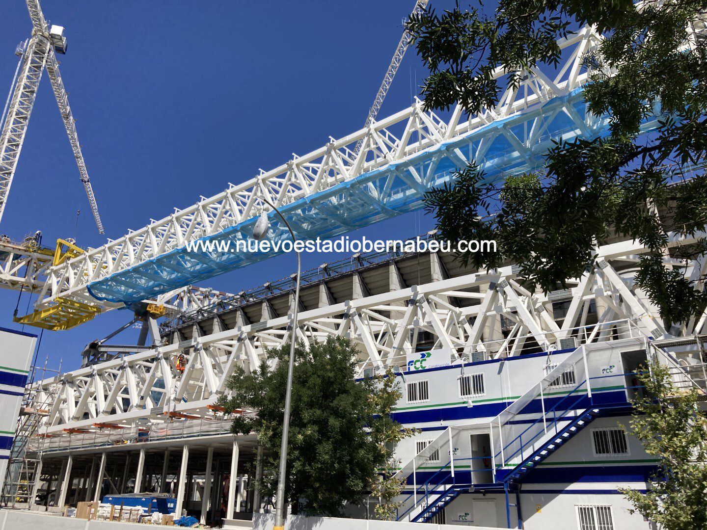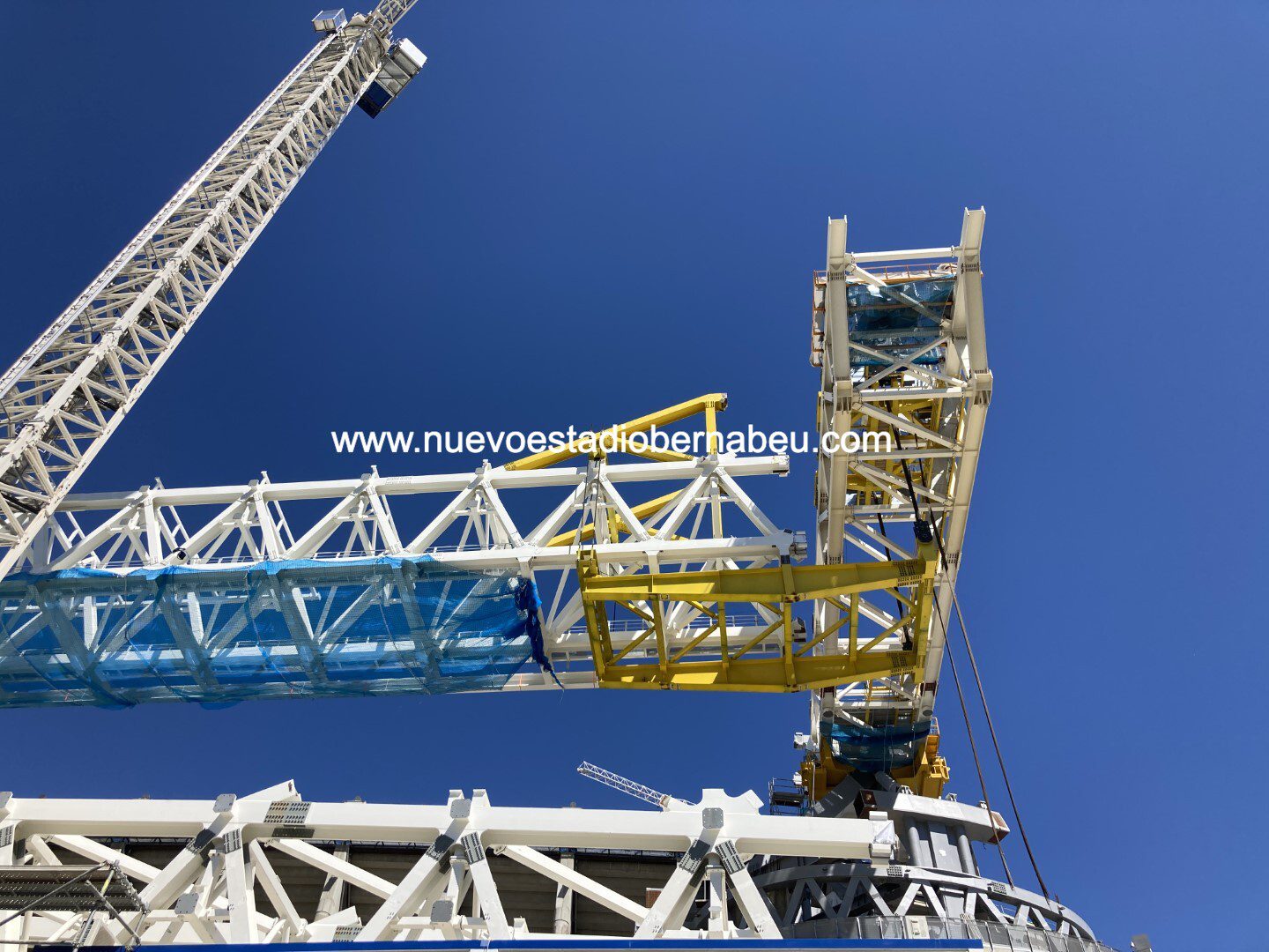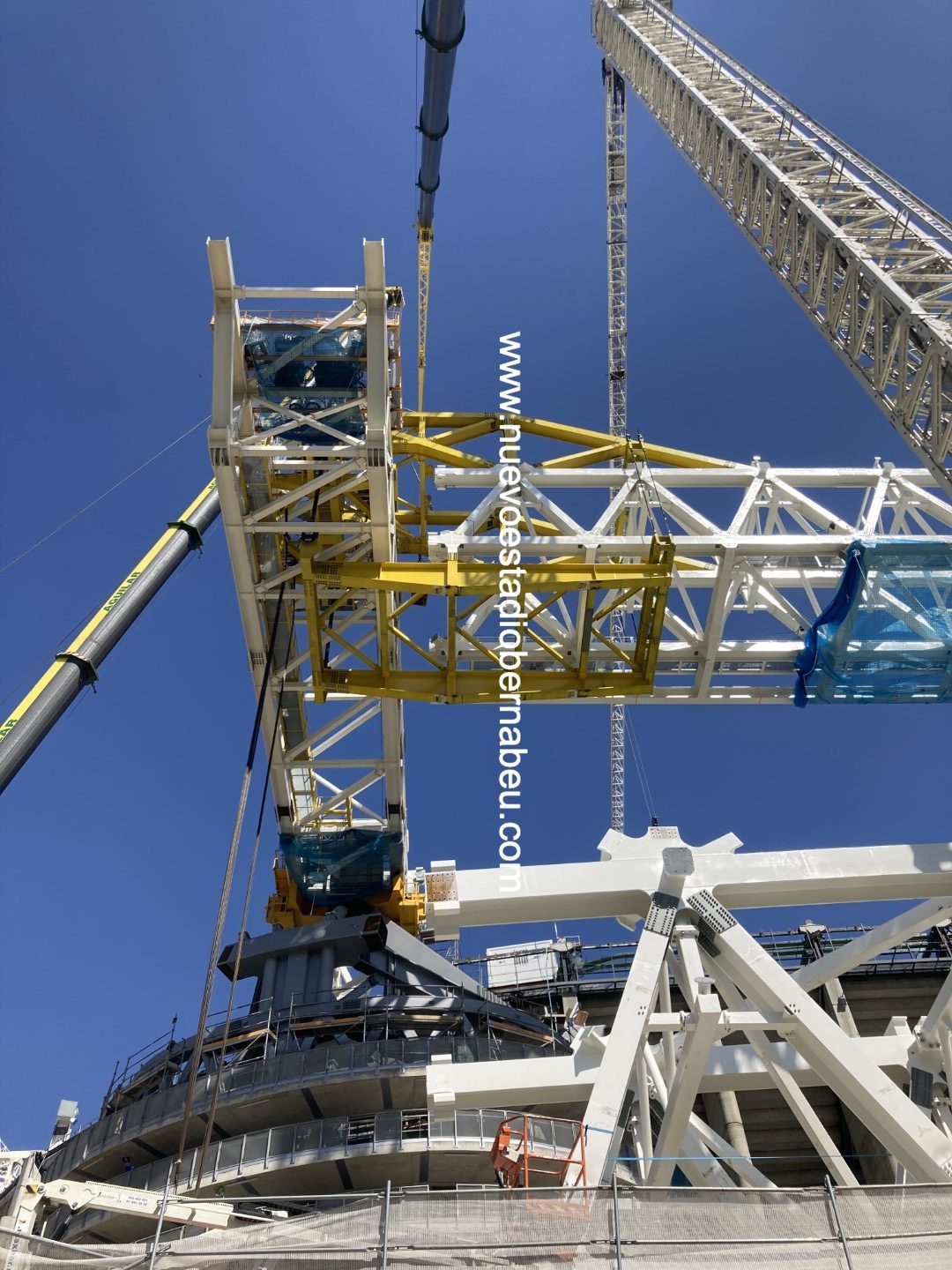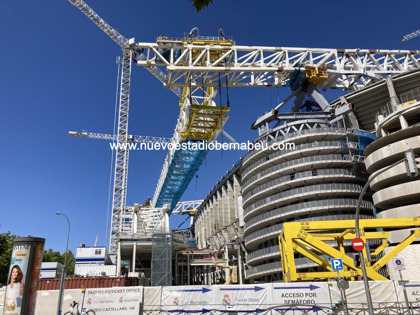 Una vez concluido con éxito el izado de la cercha número 3, se trabajará en la preparación de la maniobra de ripado de la cercha número 4 que se ejecutará si no hay contratiempos este jueves día 19, dando paso a la demolición parcial de la estructura de la plataforma auxiliar en el lateral de Castellana la cual ha servido de base para la construcción de las cuatro cerchas longitudinales. Sobre el 50% de la plataforma existente, más la nueva plataforma que se está construyendo pegada a la fachada del estadio, se construirá la viga museo sobre la cual apoyarán la ampliación de los forjados de los niveles del lateral oeste.