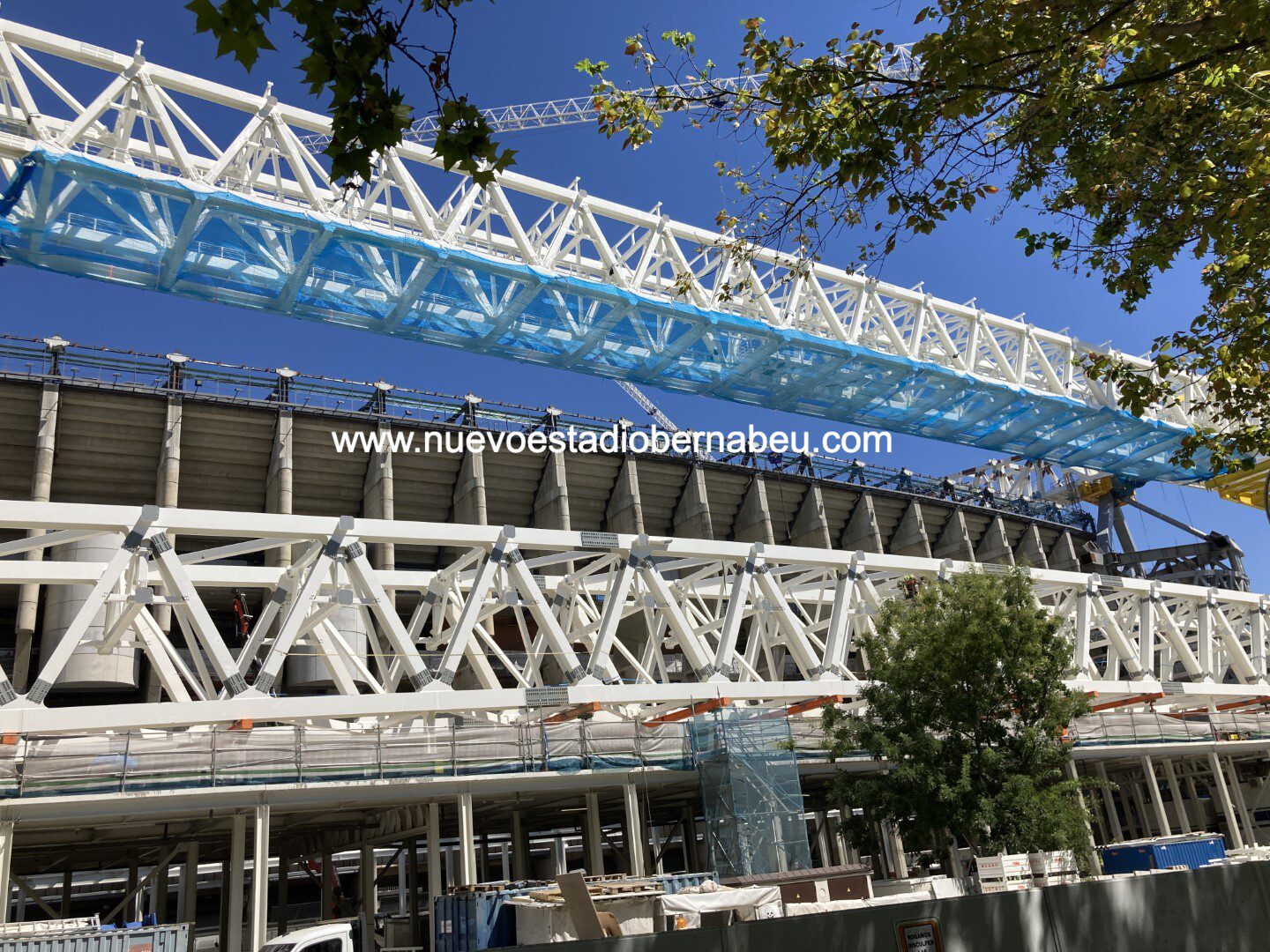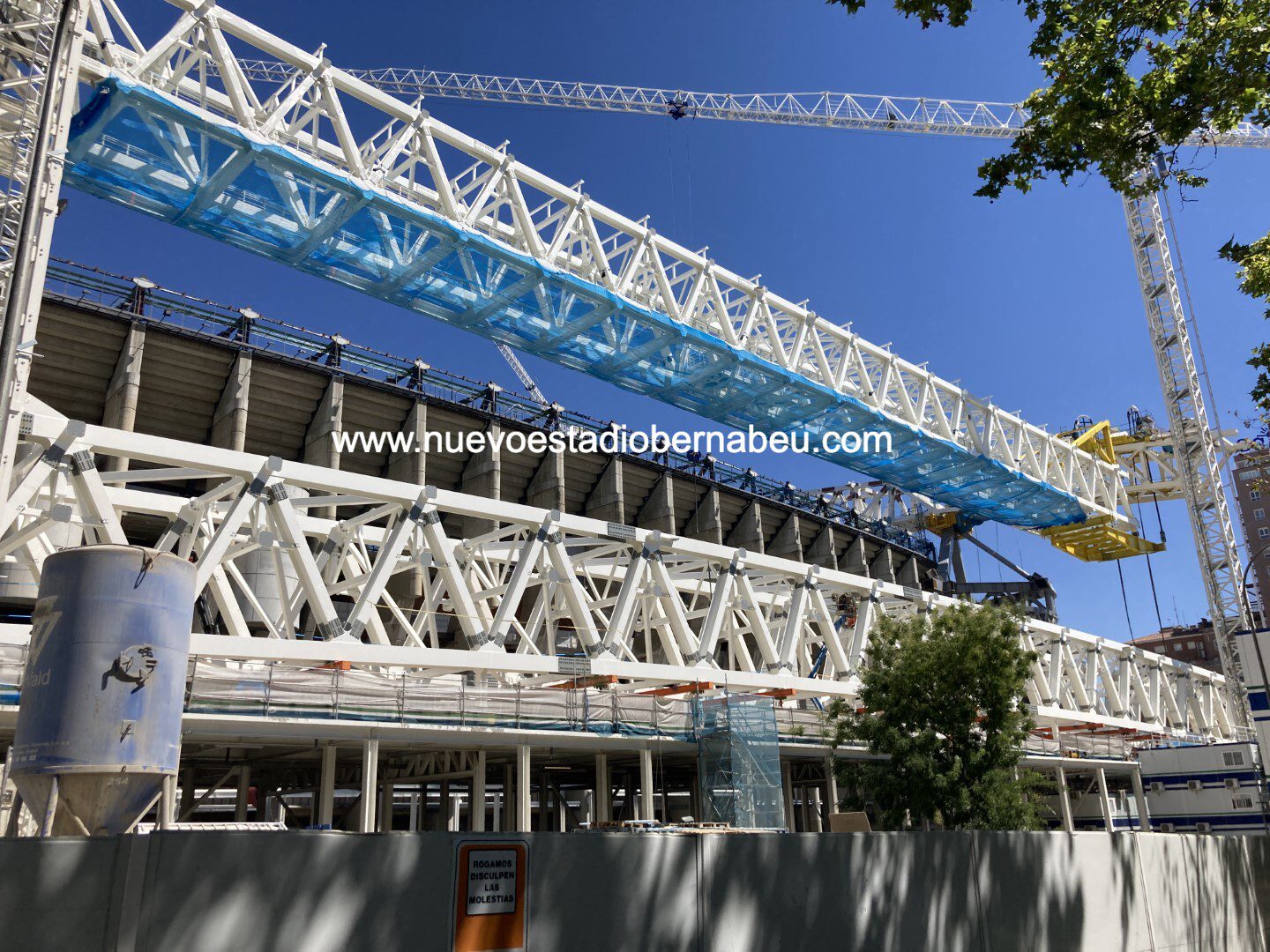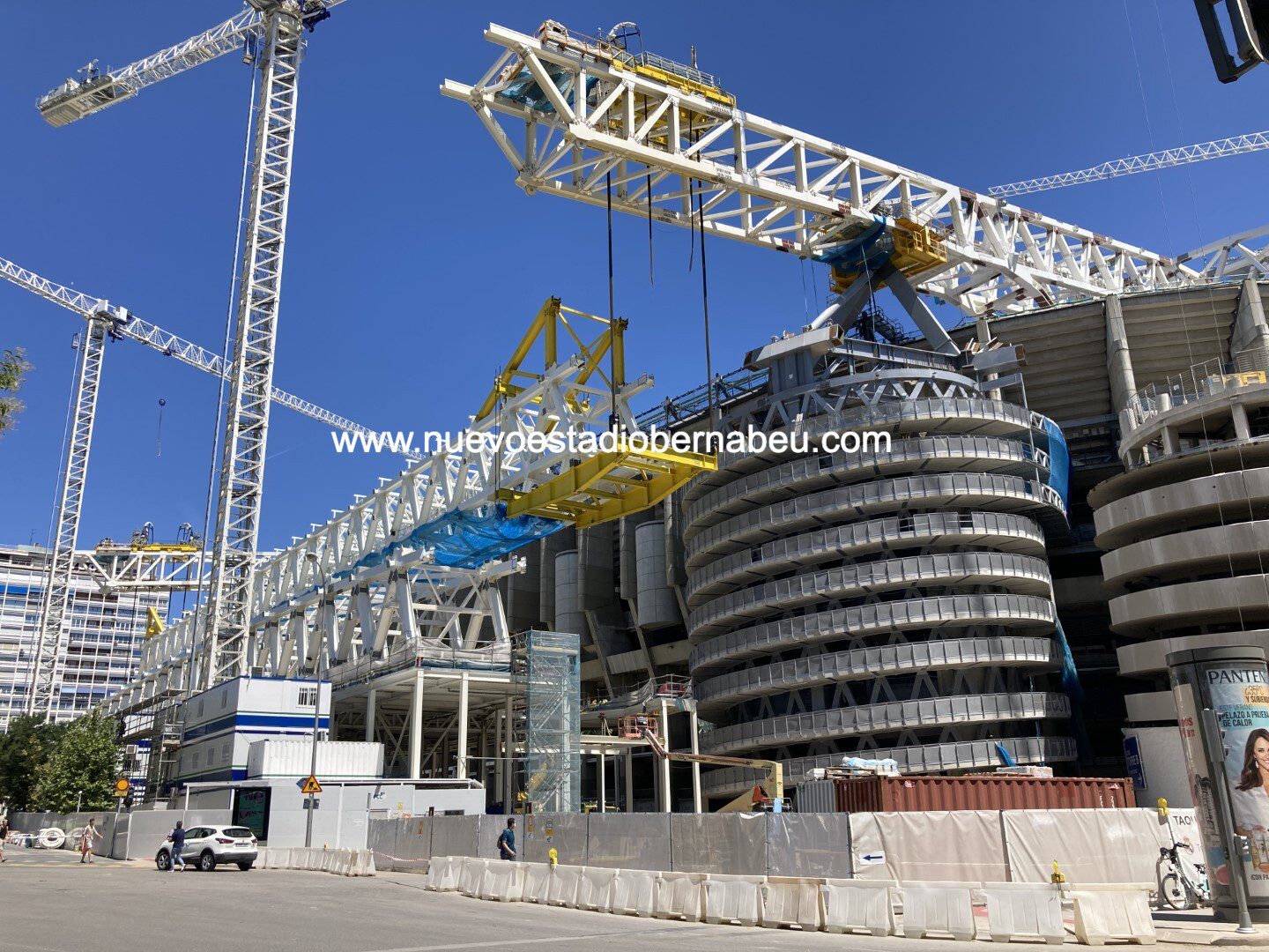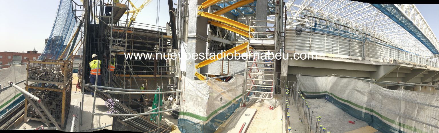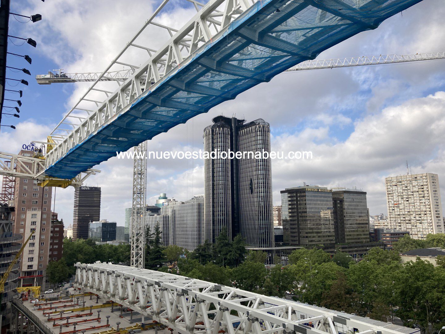 Una vez concluido con éxito el izado de la cercha número 3, se trabajará en la preparación de la maniobra de ripado de la cercha número 4 que se ejecutará si no hay contratiempos este jueves día 19, dando paso a la demolición parcial de la estructura de la plataforma auxiliar en el lateral de Castellana la cual ha servido de base para la construcción de las cuatro cerchas longitudinales. Sobre el 50% de la plataforma existente, más la nueva plataforma que se está construyendo pegada a la fachada del estadio, se construirá la viga museo sobre la cual apoyarán la ampliación de los forjados de los niveles del lateral oeste.