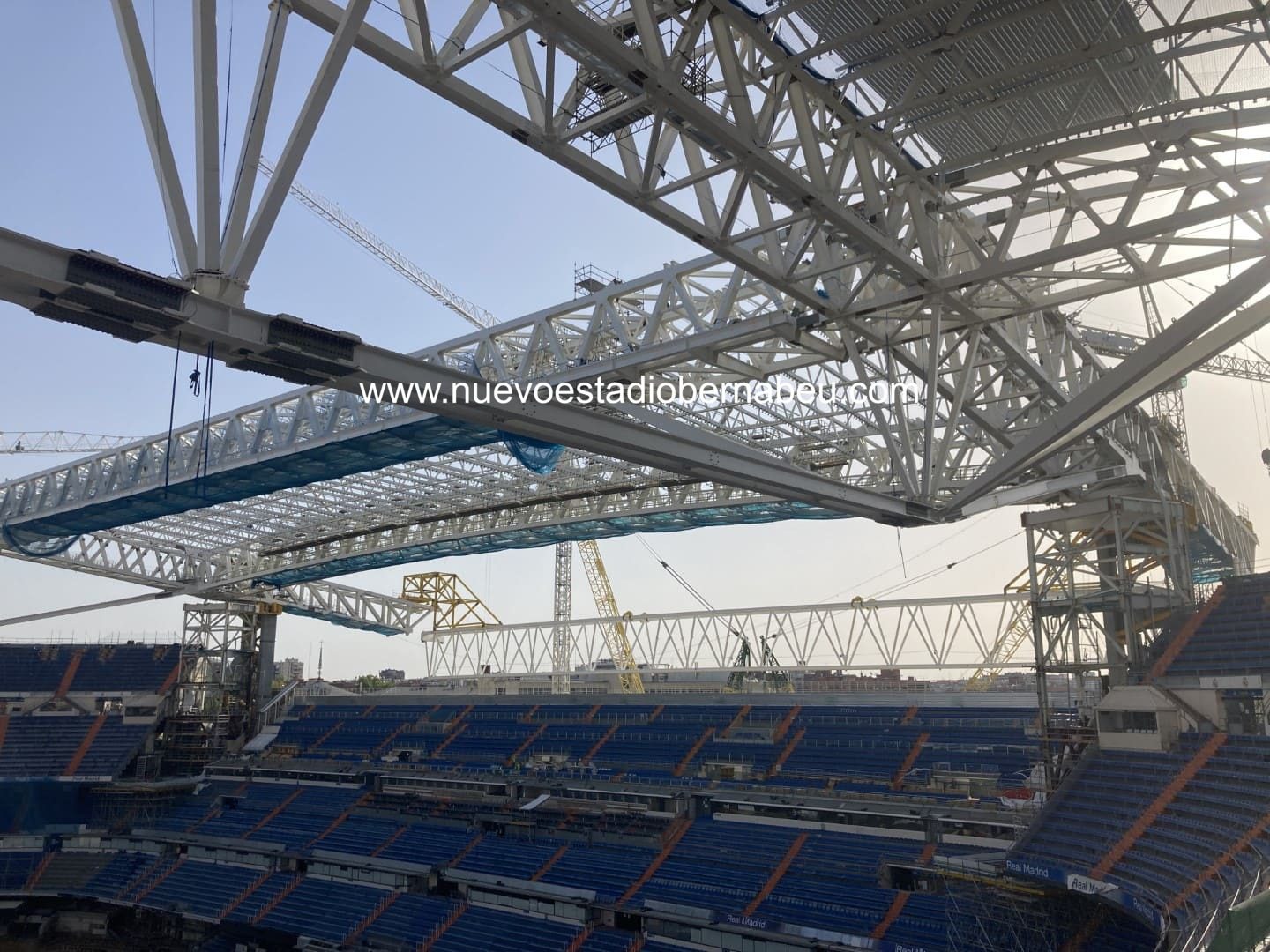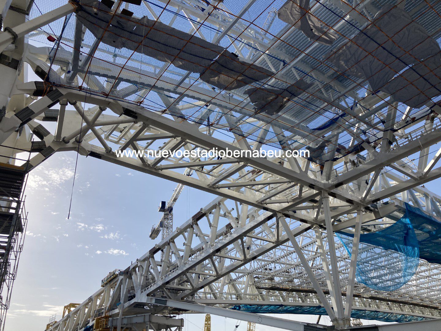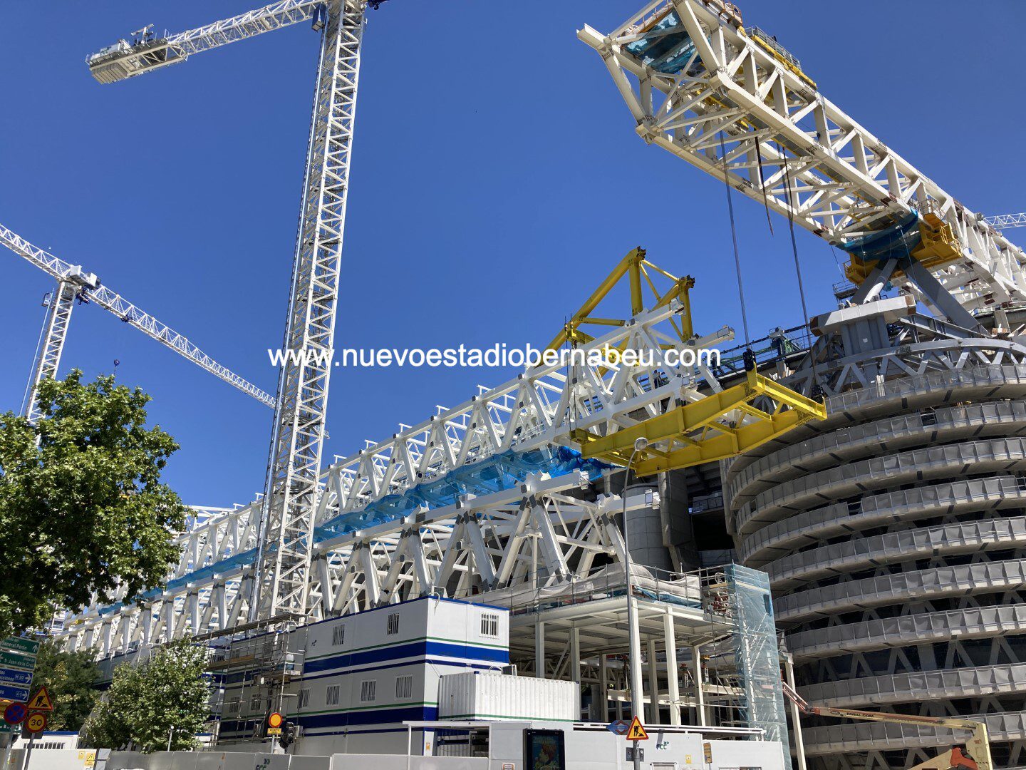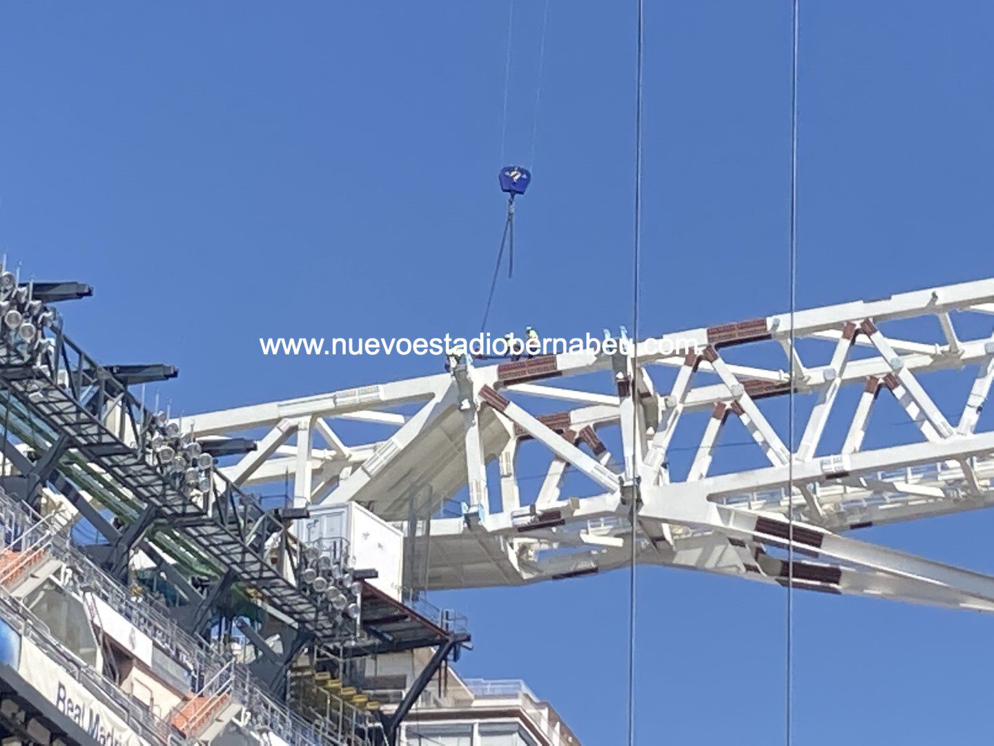 Una vez concluido con éxito el izado de la cercha número 3, se trabajará en la preparación de la maniobra de ripado de la cercha número 4 que se ejecutará si no hay contratiempos este jueves día 19, dando paso a la demolición parcial de la estructura de la plataforma auxiliar en el lateral de Castellana la cual ha servido de base para la construcción de las cuatro cerchas longitudinales. Sobre el 50% de la plataforma existente, más la nueva plataforma que se está construyendo pegada a la fachada del estadio, se construirá la viga museo sobre la cual apoyarán la ampliación de los forjados de los niveles del lateral oeste.