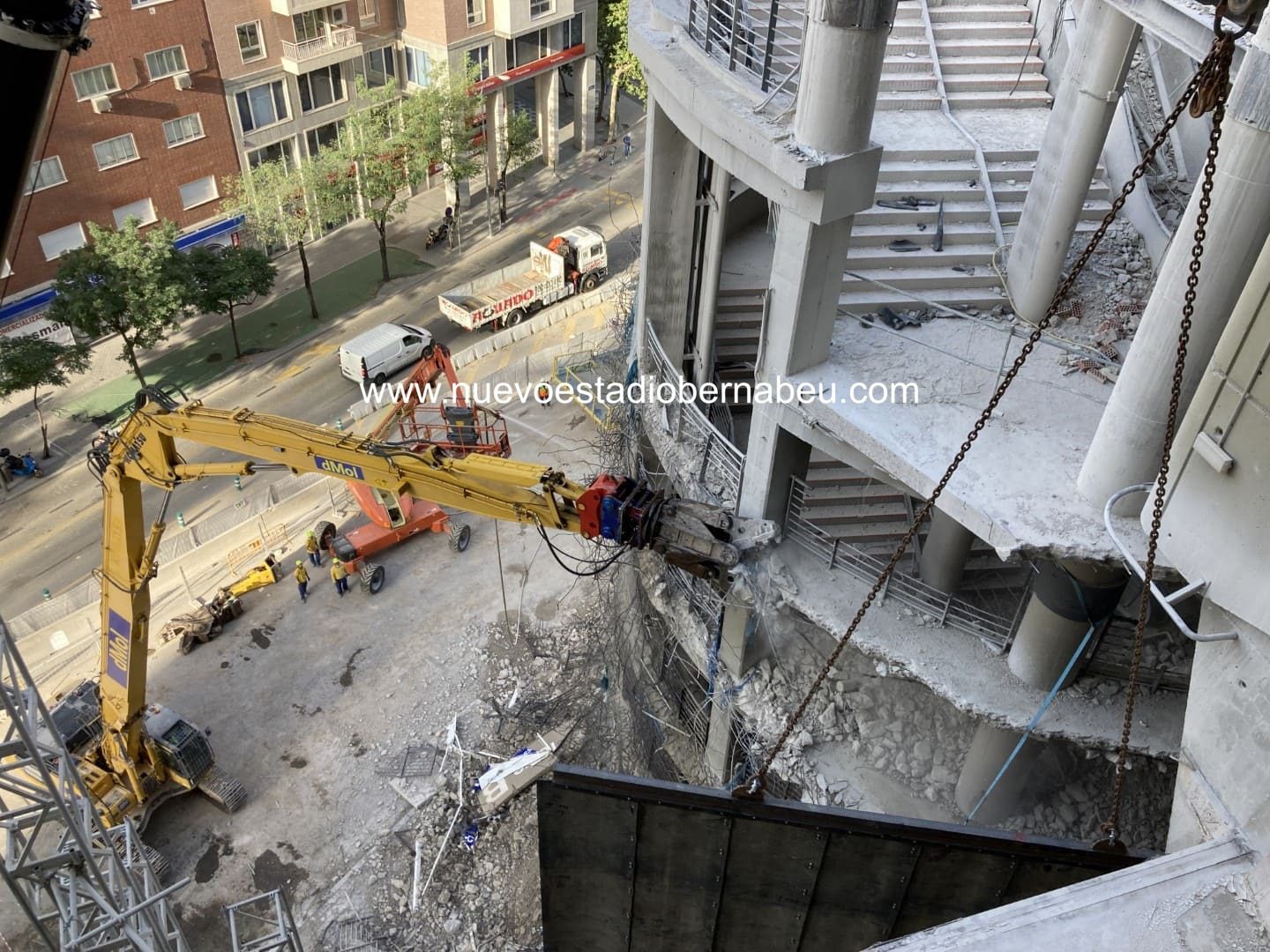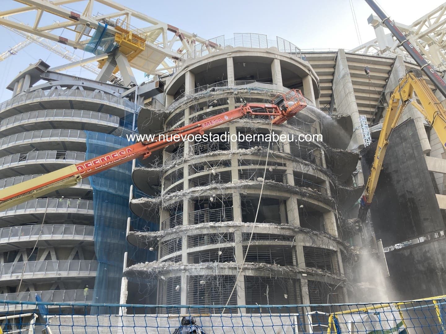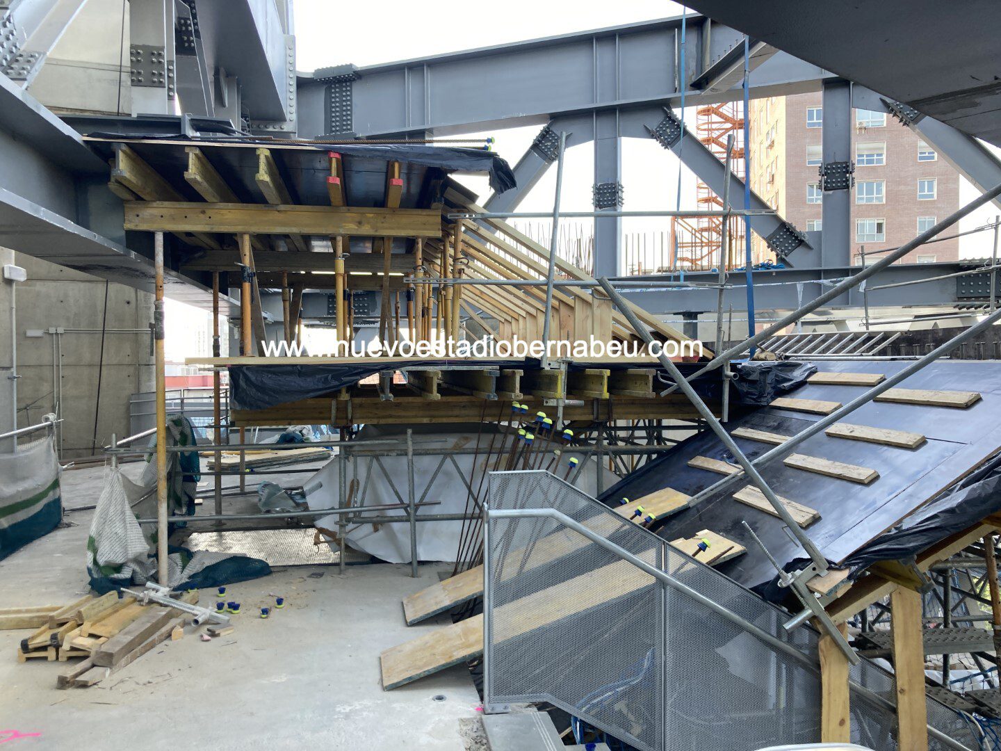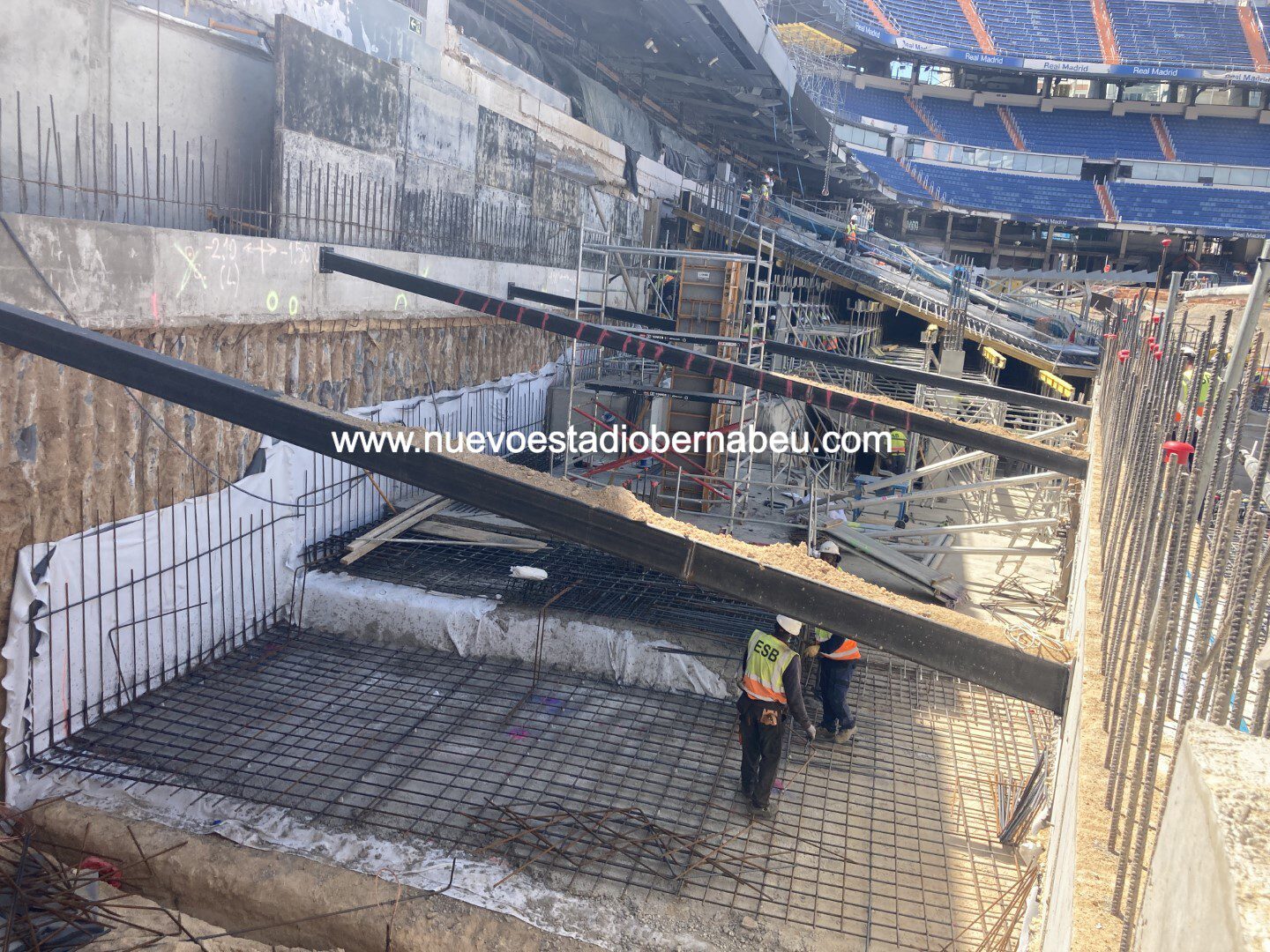 Una vez concluido con éxito el izado de la cercha número 3, se trabajará en la preparación de la maniobra de ripado de la cercha número 4 que se ejecutará si no hay contratiempos este jueves día 19, dando paso a la demolición parcial de la estructura de la plataforma auxiliar en el lateral de Castellana la cual ha servido de base para la construcción de las cuatro cerchas longitudinales. Sobre el 50% de la plataforma existente, más la nueva plataforma que se está construyendo pegada a la fachada del estadio, se construirá la viga museo sobre la cual apoyarán la ampliación de los forjados de los niveles del lateral oeste.