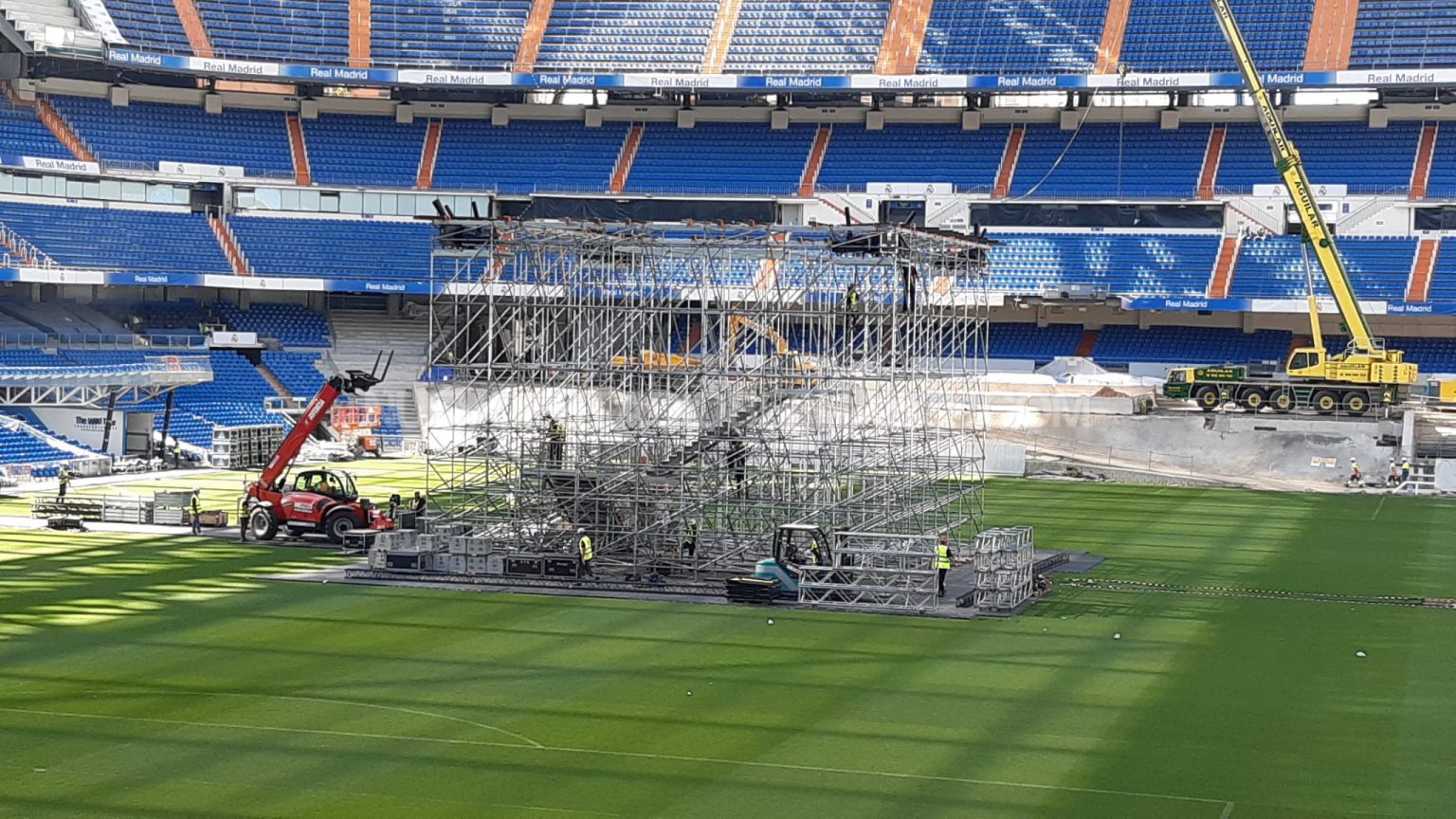 Con más de 10 metros de alto por 16 de ancho, las pantallas que se están instalando son de la mejor resolución del mercado para un evento de estas características. Además de las pantallas se prepara un amplio dispositivo de entretenimiento previo al partido.