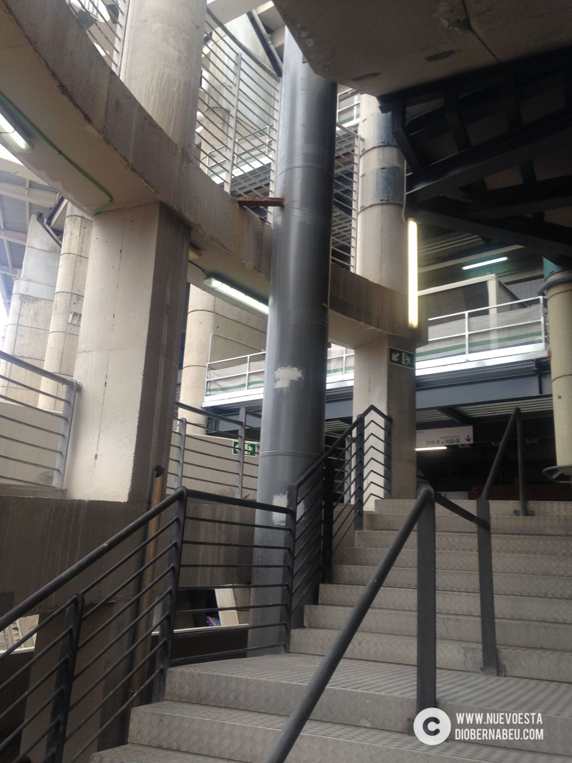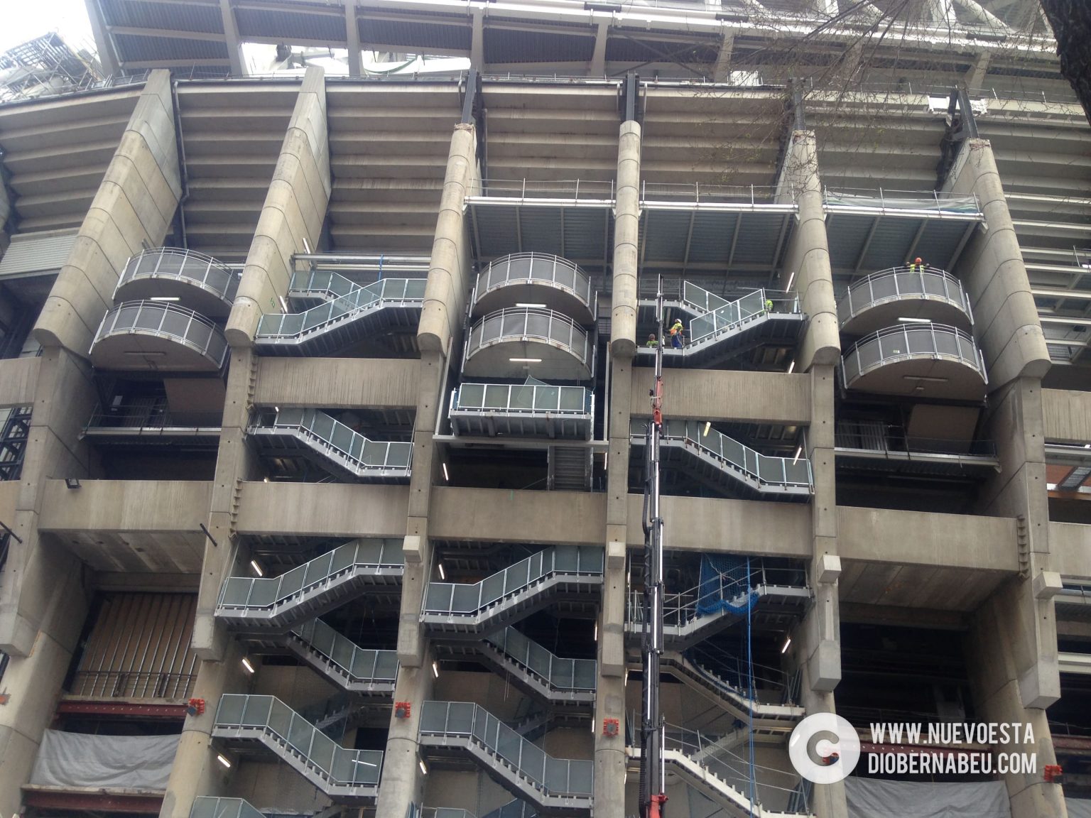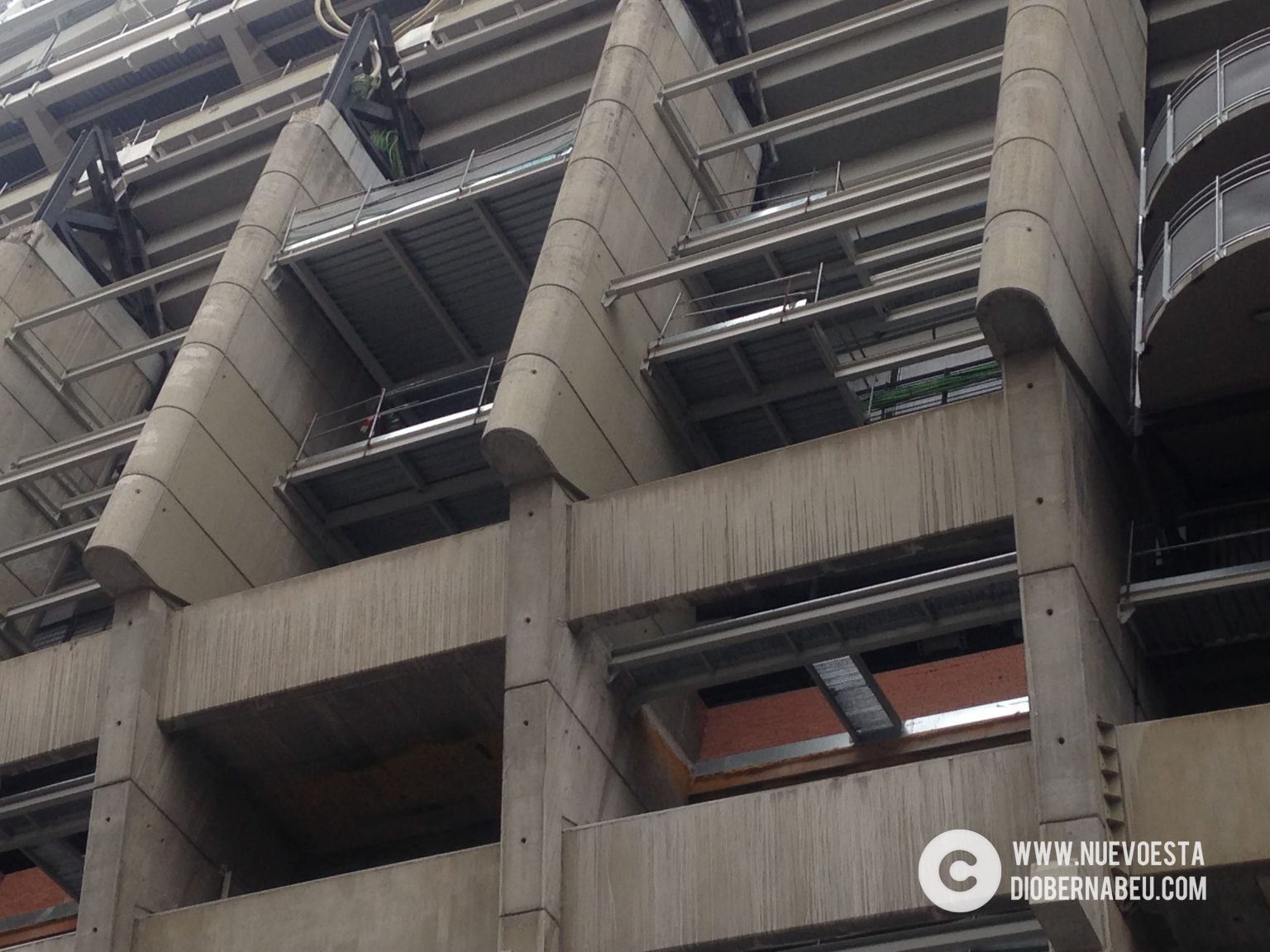 Se trabaja en los refuerzos de las costilas del fondo sur y fondo norte, así como las costillas del lateral oeste desde dentro y desde el exterior del estadio, refuerzos en bandejas de nivel 1, escalera de evacuación puerta 42, refuerzo de costillas nivel 4, refuerzo de pilares oeste en nivel 1.