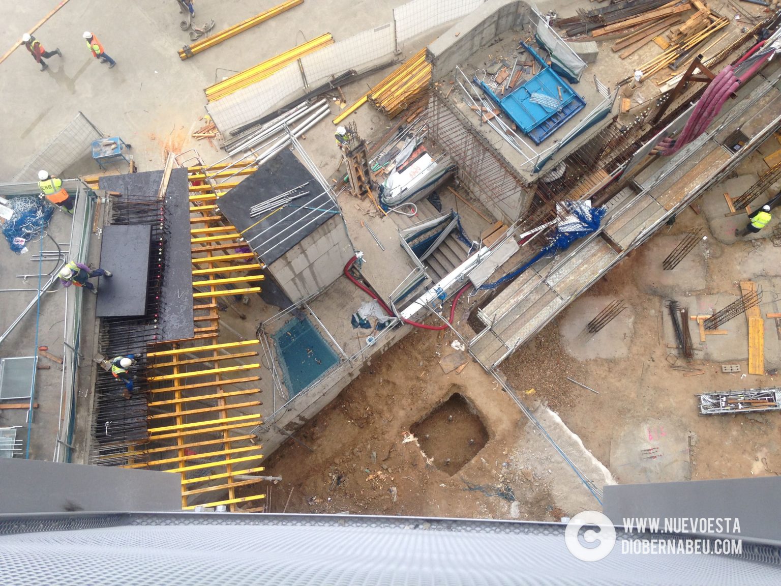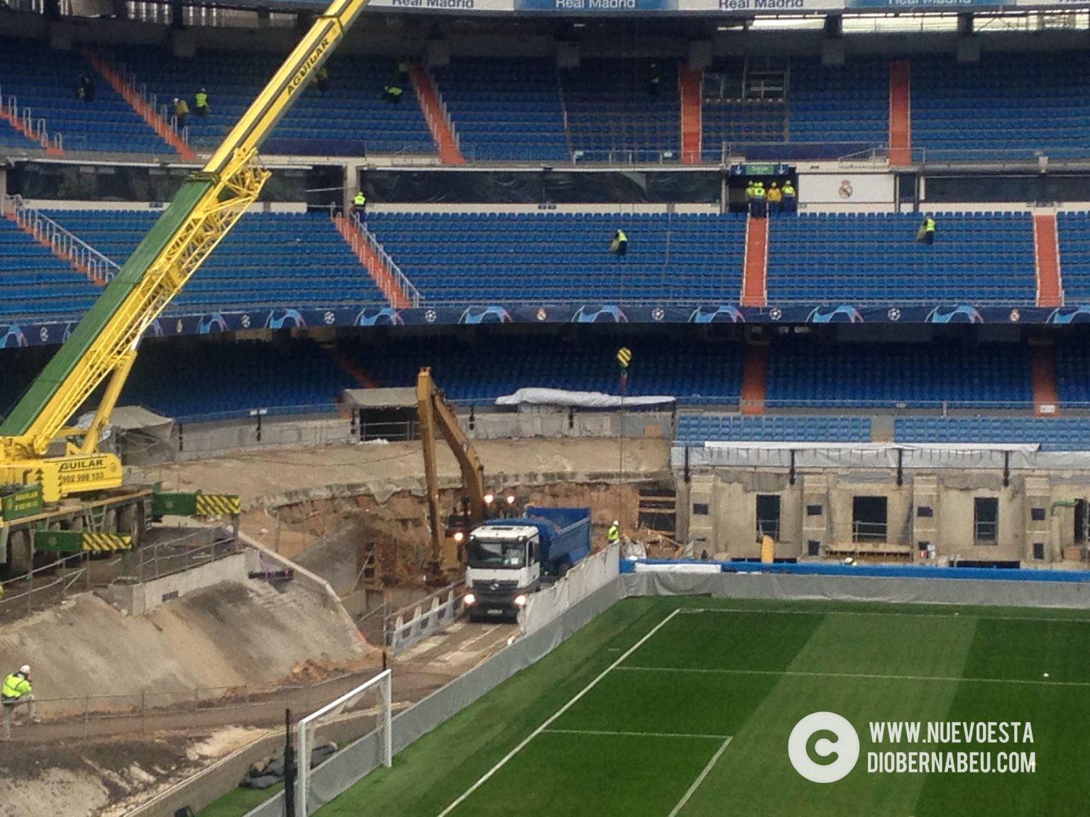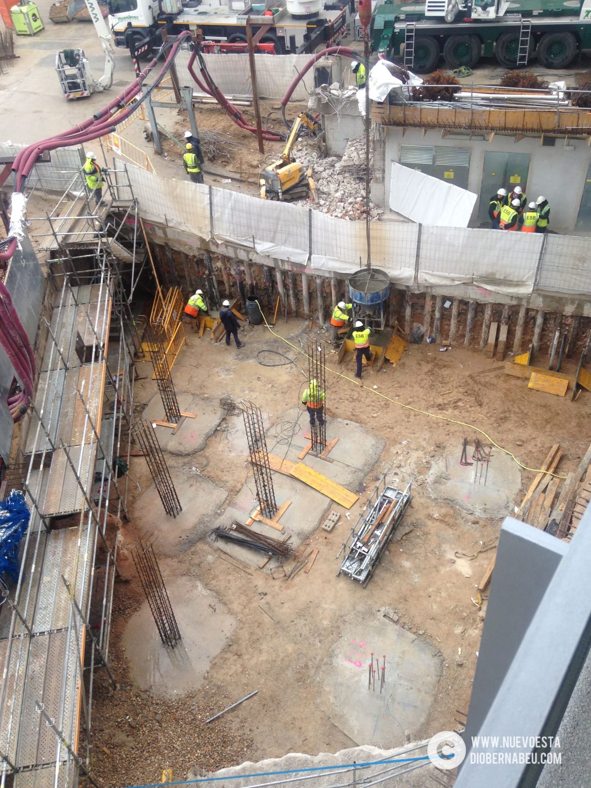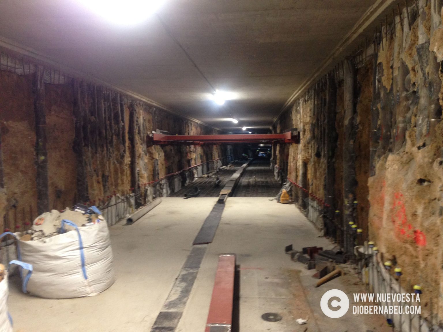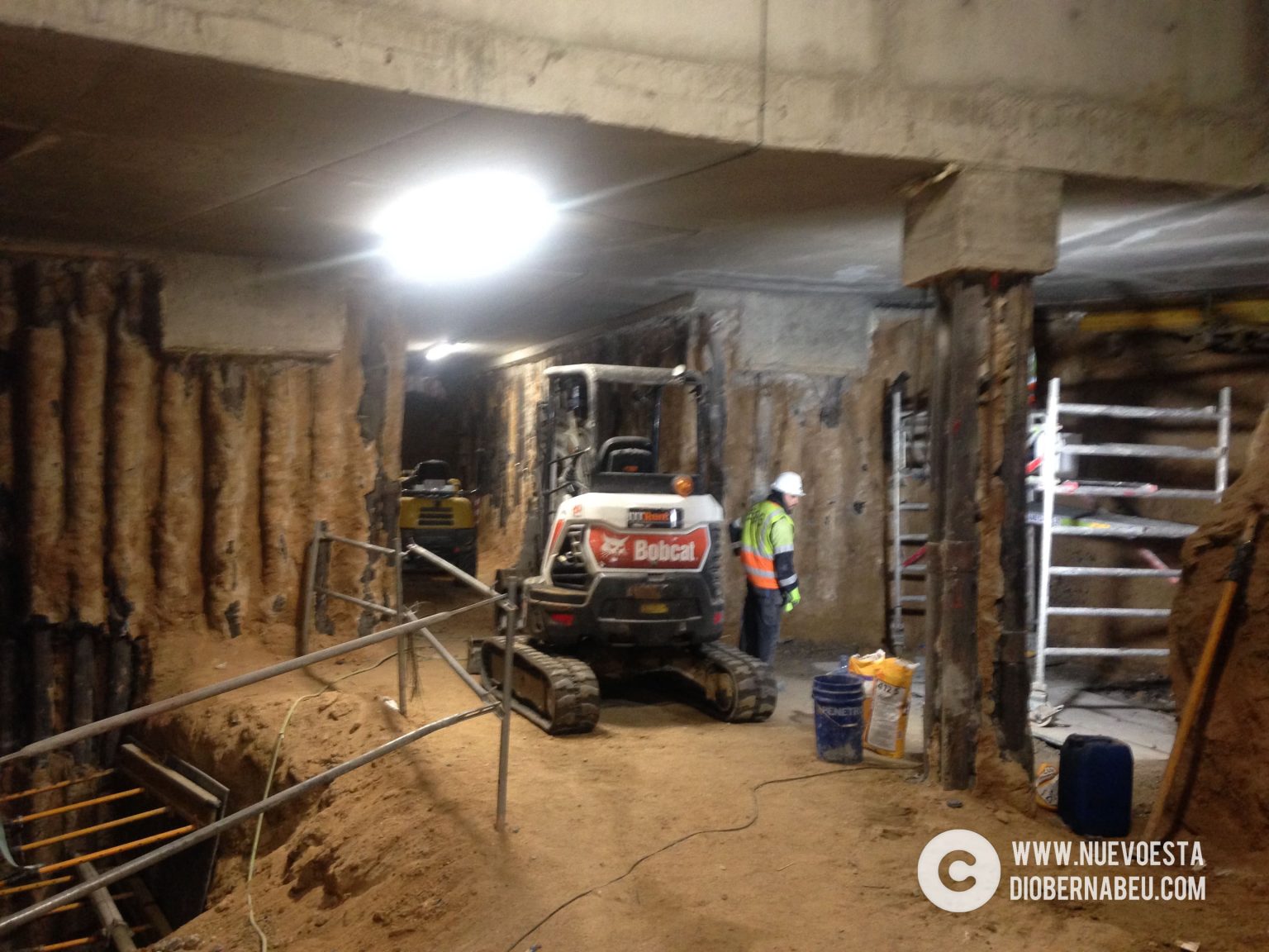 En cuanto al desarrollo de trabajos en el terreno de juego mecanizado se trabaja bajo grada en la conexiones con el hipogeo y en la línea de anclajes del mismo a nivel 5 todo ello bajo la estricta auscultación del túnel de ADIF y de las pantallas del futuro invernadero.